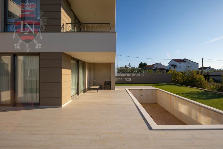Vila ima predivan pogled na more i kompletno je završena. Unutrašnjost je u potpunosti namještena i kao takva se prodaje. Okoliš je uređen sa zelenilom i sustavom navodnjavanja te ogradom na daljinski.