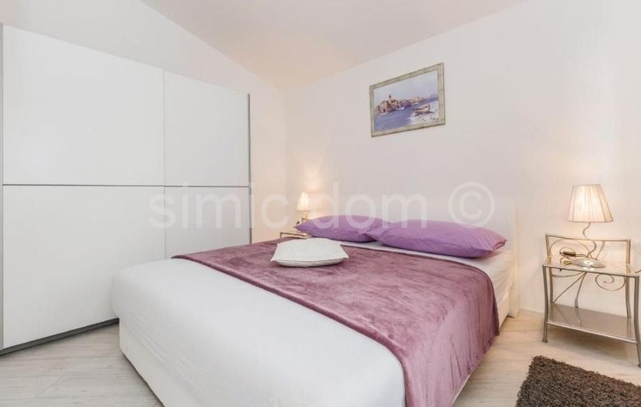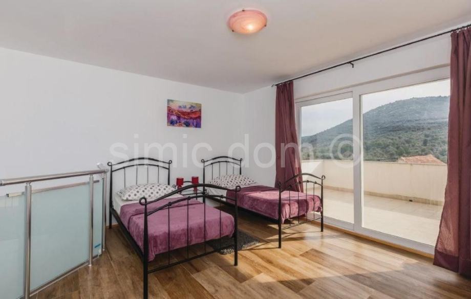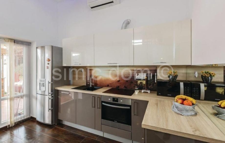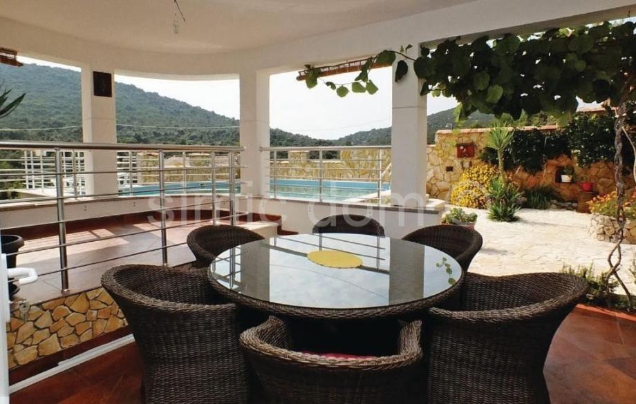 Na prodaju je vrlo prostrana vila s bazenom, smještena na iznimno mirnoj lokaciji na području Marine. Vila se nalazi na parceli od 472m2 koja uključuje i pomoćni objekt: šarmantno uređenu ljetnu kuhinju s malim toaletom i prostorom za objedovanje. Površina vile je 145m2, a proteže se na trietaže. U prizemlju se nalazi odlično uređen stan na tri razine koji nudi tri spavaće sobe, dvije kupaonice te dnevni dio s kuhinjom i blagovaonicom. Iz prizemlja se izlazi na vrlo veliku terasu, idealnu za mirne ljetne večeri. Srednja etaža nudi nedovršen prostor koji se jednostavnim zahvatima lako može urediti kao studio apartman ili fitness soba. Na najgornjoj se etaži nalazi lijep jednosoban apartman s čije se terase pruža prekrasan pogled na more i mjesto. Dodatna je prednost ove lijepo namještene i kvalitetno opremljene vile njezina popločana i brižljivo održavana okućnica koja se ljeti nalazi u hladu. Riječ je o uistinu lijepoj nekretnini čija prostranost ostavlja mnoge mogućnosti i za iznajmljivanje, ali i za miran obiteljski život.