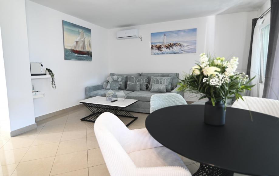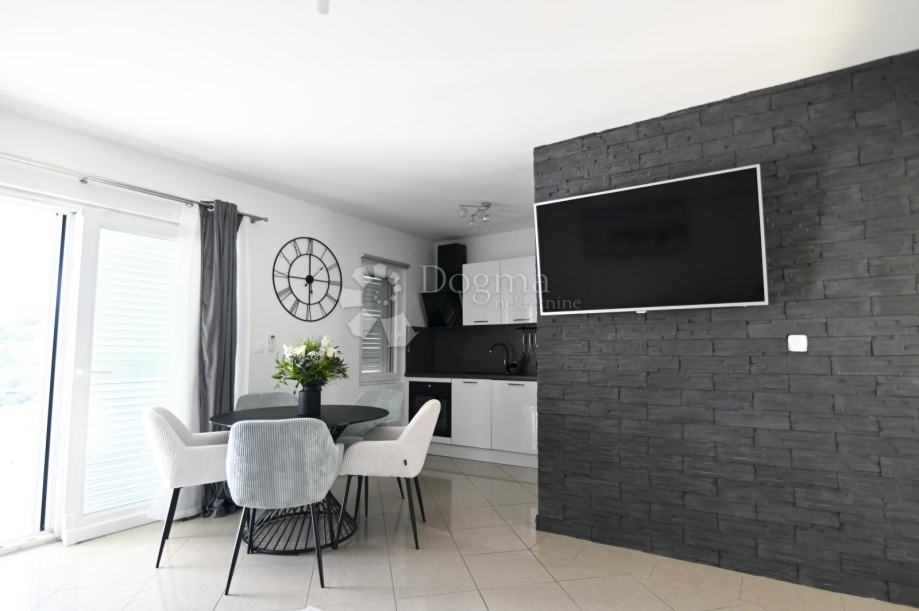 sastoji od dnevnog boravka s blagavaonicom, spavaće sobe, kupatila, wc-a i prostrane terase.