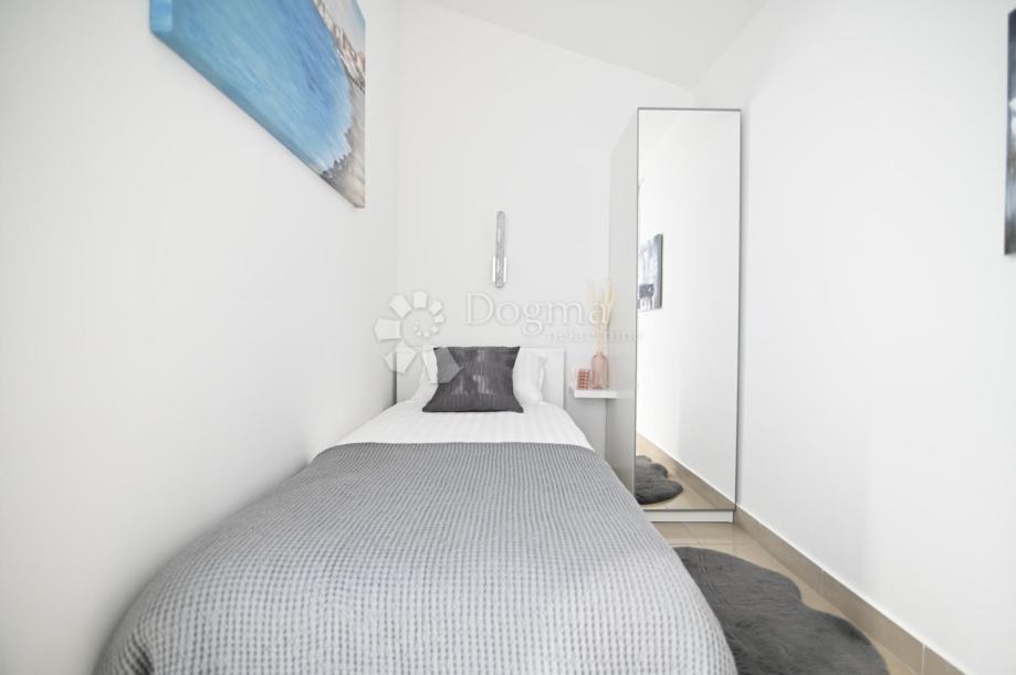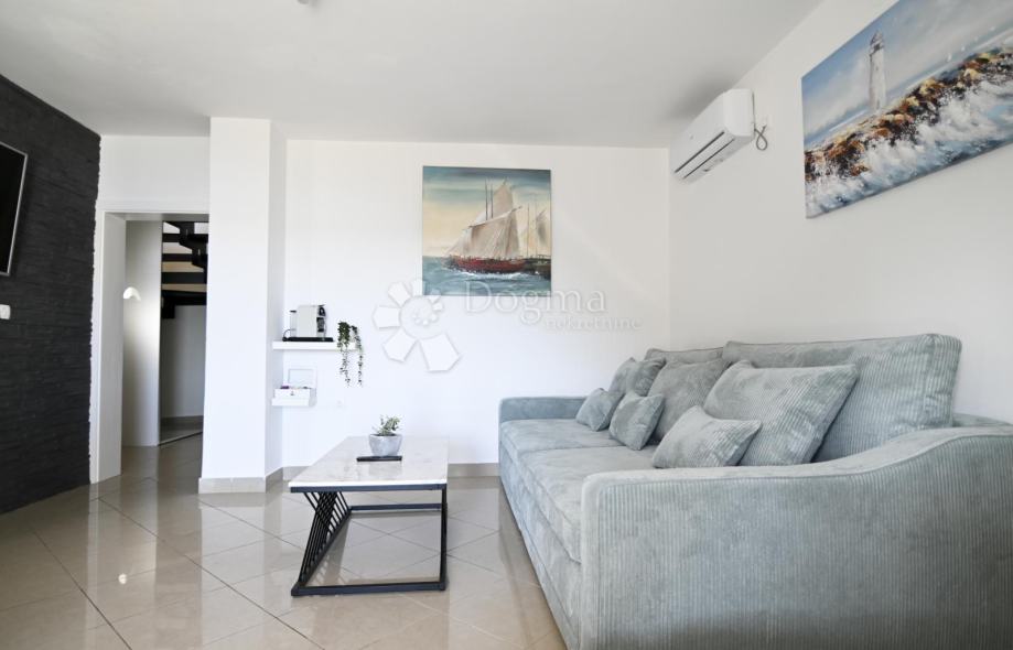 Vila bez da se ubraja apartman ima 4 spavace sobe, 2 kupatila, dnevni boravak s blagovaonicom i dvije velike prostrane terase s pogledom na mpre, odvojen vešeraj i konobu.