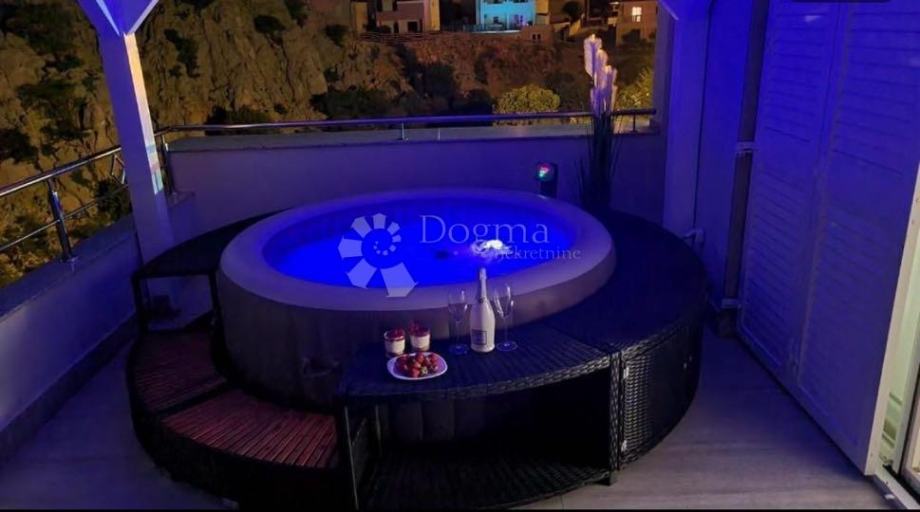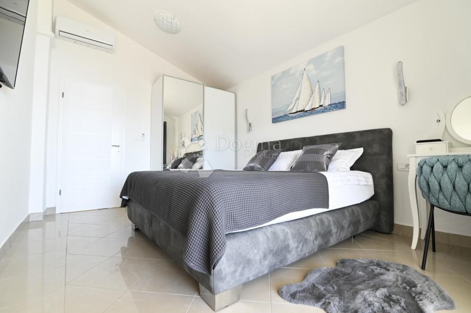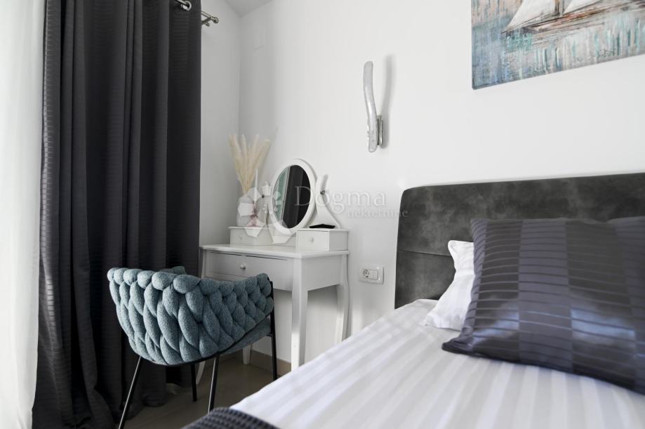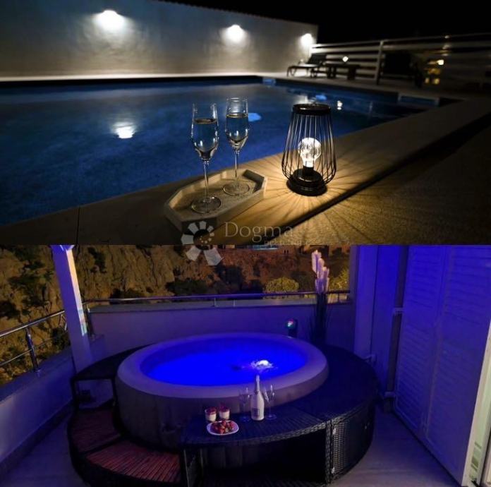 Vila je opremljena s moderne ugradbene dvije kuhinje, boxspring hotelskim krevetima, smart led televizorima dijagonala 150cm i klima uređajima u svim prostorijama i na gornjoj terasi se nalazi wellnes - whirpool i sunčalište.