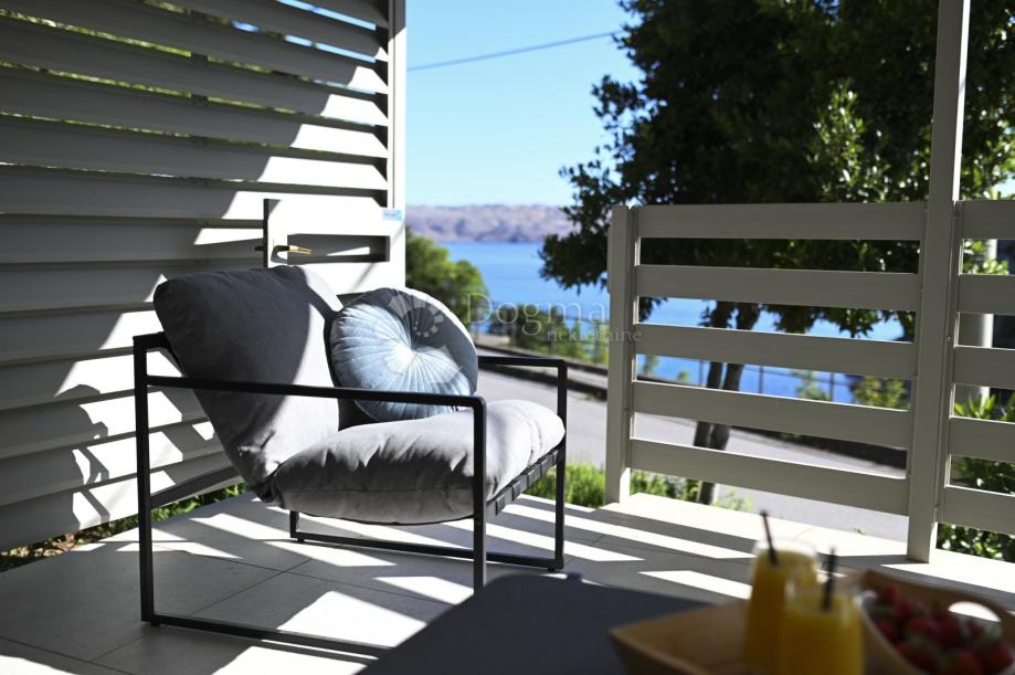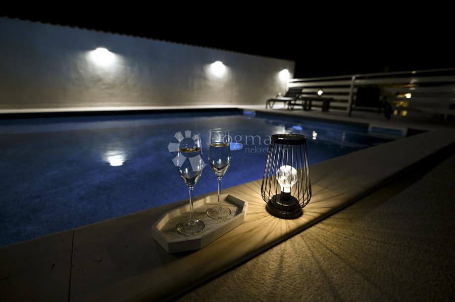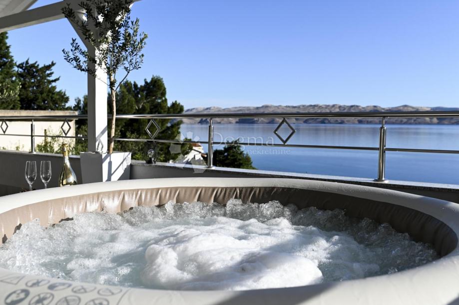 Vila osigurava oazu mira, privatnost i luksuz, bazen skriven od pogleda i predivni ugođaj prostranih terasa kojima pogled seže na more i otok Pag.