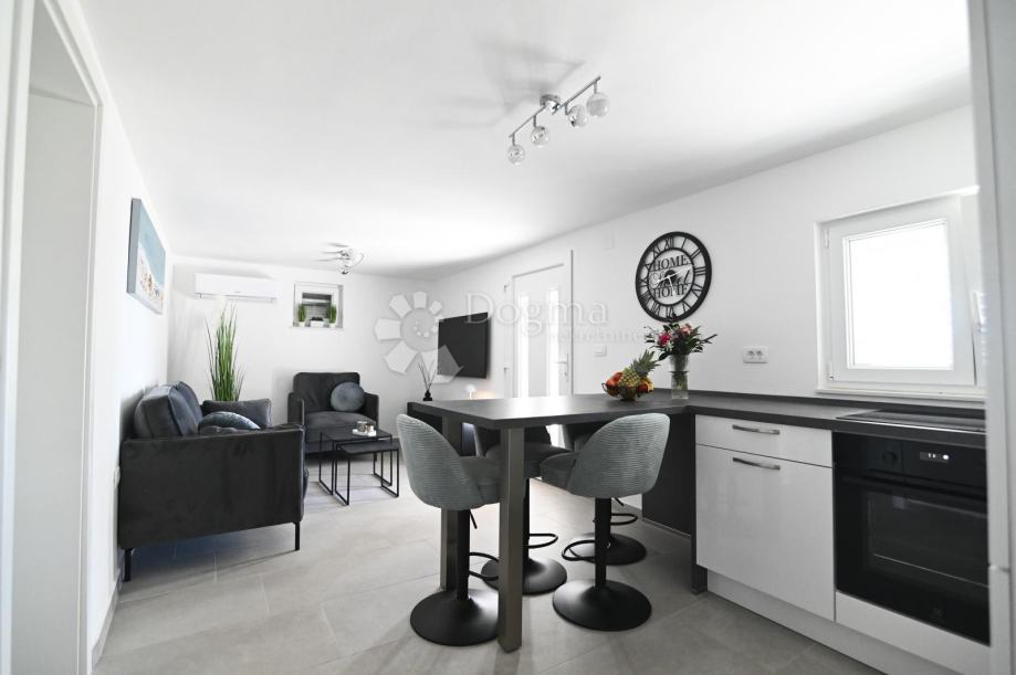 ( novi razmještaj prostorija, prezida, nova nadogradnja, nova fasada i izolacija, nova keramika u kući, na terasama, okućnici, sunčalištu, nanovo razvedena struja i voda, nova stolarija s griljama....)