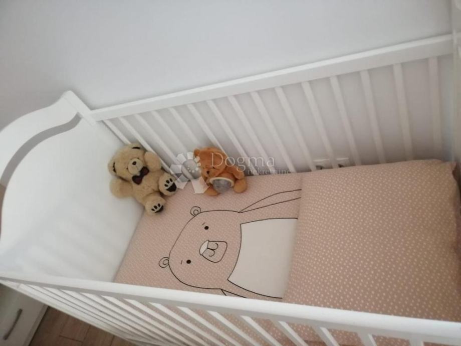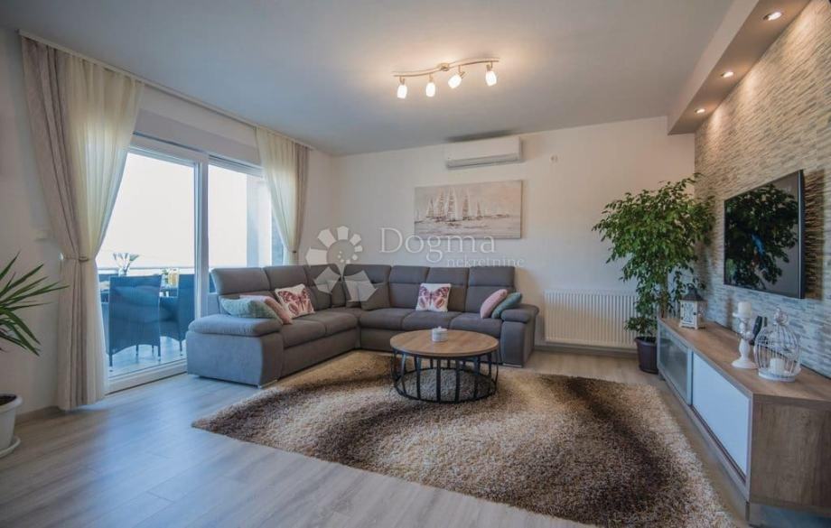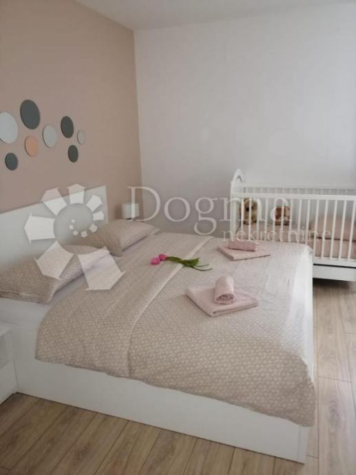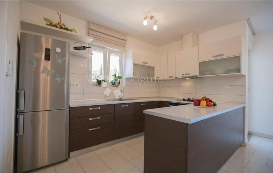 Sastoji se od gornje etaže veličine 143m2 na kojoj se nalazi kuhinja i dnevni boravak, te tri sobe sve opremljeno vrhunskom stolarijom, kućanskim aparatima i namještajem.