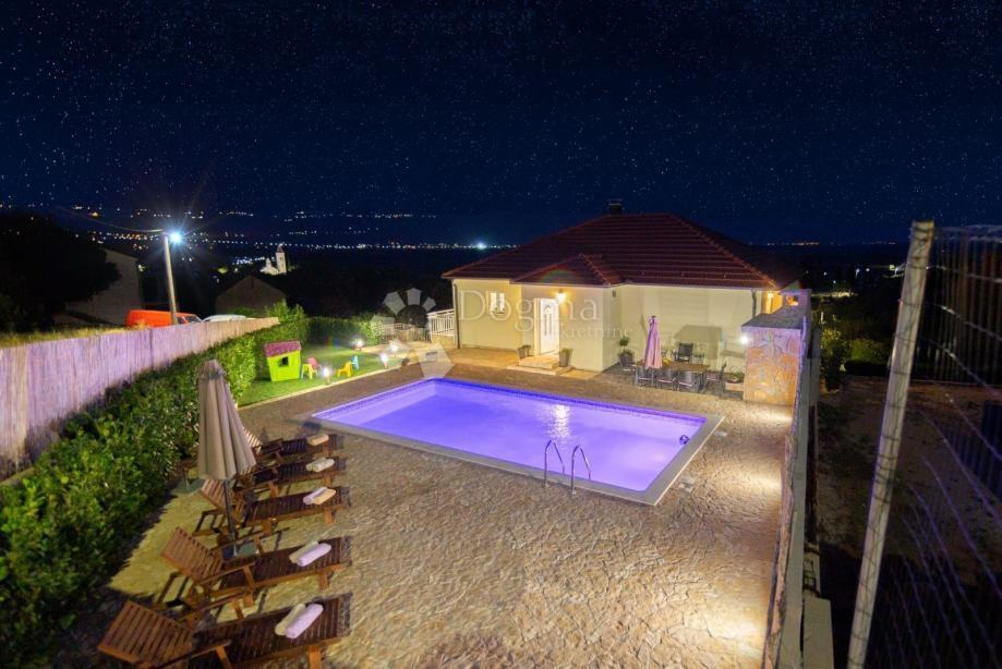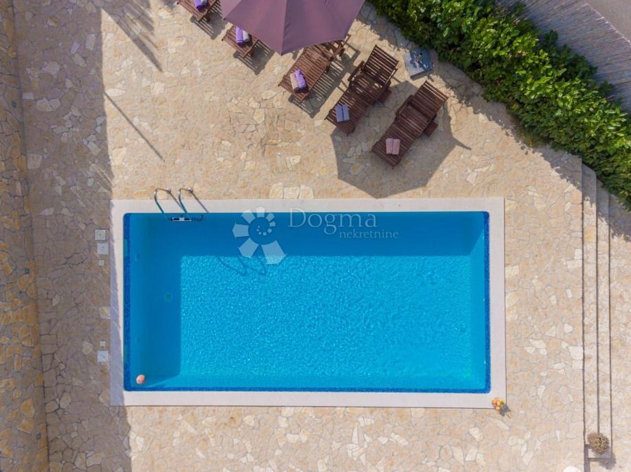 Okućnica kuće se sastoji od prekrasnog bazena veličine 40m2 te vanjskog kućice za odmor sa roštiljom i vanjskim stolom.
