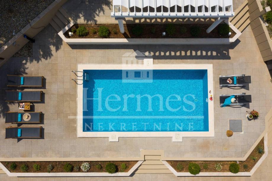 Prodajemo luksuznu vilu s bazenom i terasom, a koja se nalazi u Vodicama. Vila se prostire na 400 m2 i dvije etaže - prizemlju i 1. katu.