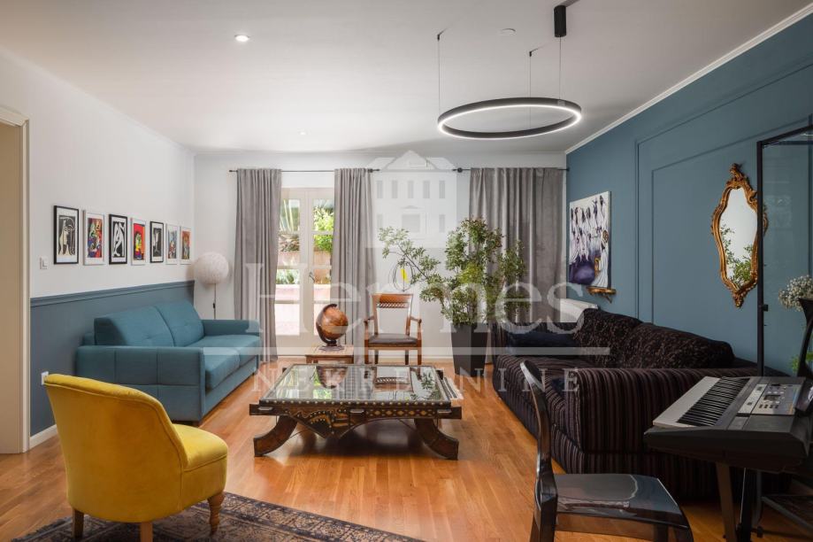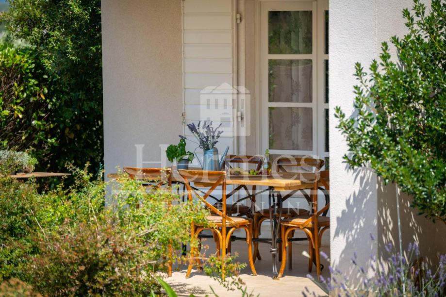 On the 1st floor, there are 3 bedrooms with ensuite bathrooms and balconies, a study/guest room on the gallery, a large living room with a dining room and kitchen with access to the terrace, a Mediterranean garden with a swimming pool, and an outside kitchen with a large dining table under the pergola, great for entertaining. There is also a separate guest toilet as well as a laundry room on the same floor.