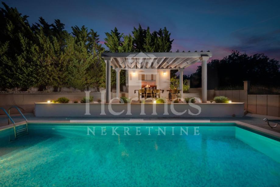 Kuća se nalazi u mirnom okruženju obiteljskih kuća. Najljepši dio za provođenje ljetnih dana je svakako vanjski bazen (8x4x1.6m), sunčalište, te ljetna kuhinja.
