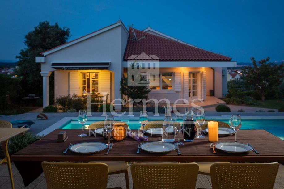 FOR SALE!! A luxurious villa with a balcony, and a terrace, located in the town of Vodice. The villa covers 400 m2 on two floors - the ground floor and the first floor.
