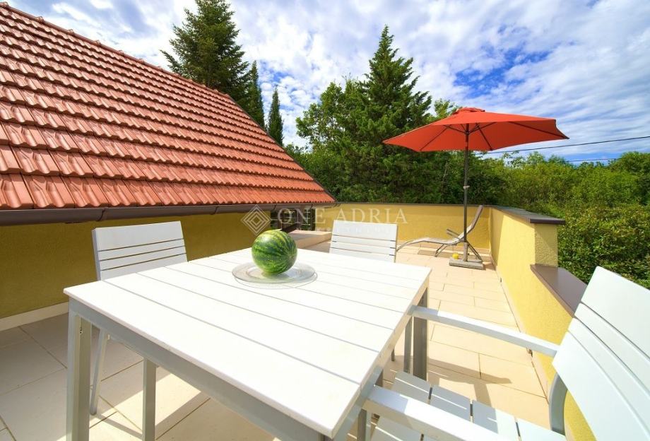 Kuća je kompletno uređena i namještena, pri čemu se posebna pažnja posvetila svakom detalju, kvaliteti materijala i funkcionalnosti prostora. Ukupna korisna površina iznosi 198 m2, a nalazi se na prostranoj i lijepo uređenoj parceli od 1.124 m2, na kojoj se smjestio i pomoćni objekt površine 13 m2.