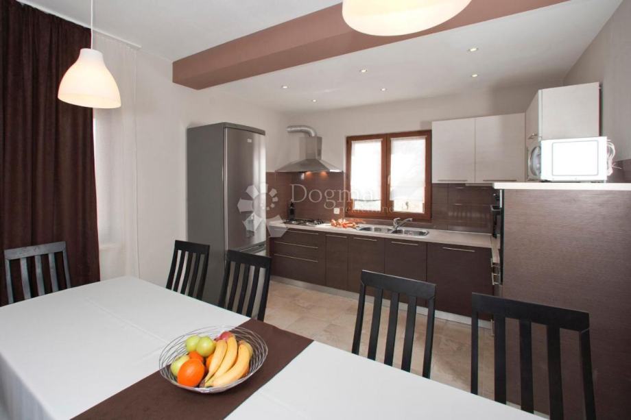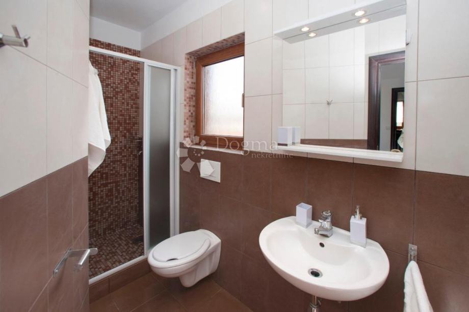 Vila je smještena u mirnoj ulici bez prometa i blizu plaža i turističkih središta i bitnih sadržaja za život Kompletno je namještena i kao takva se i prodaje.