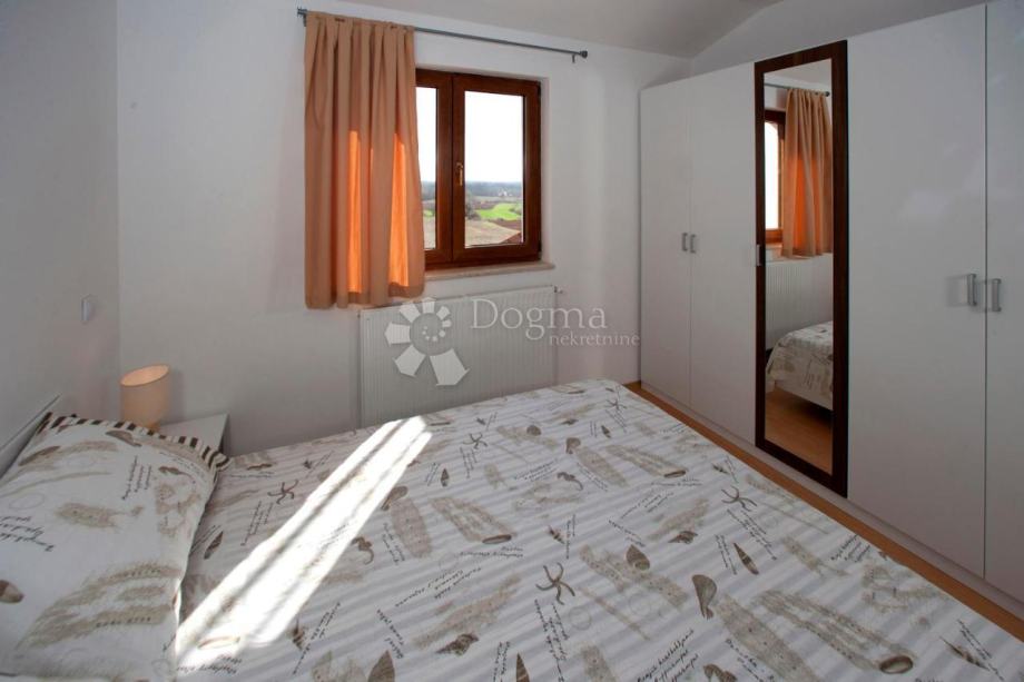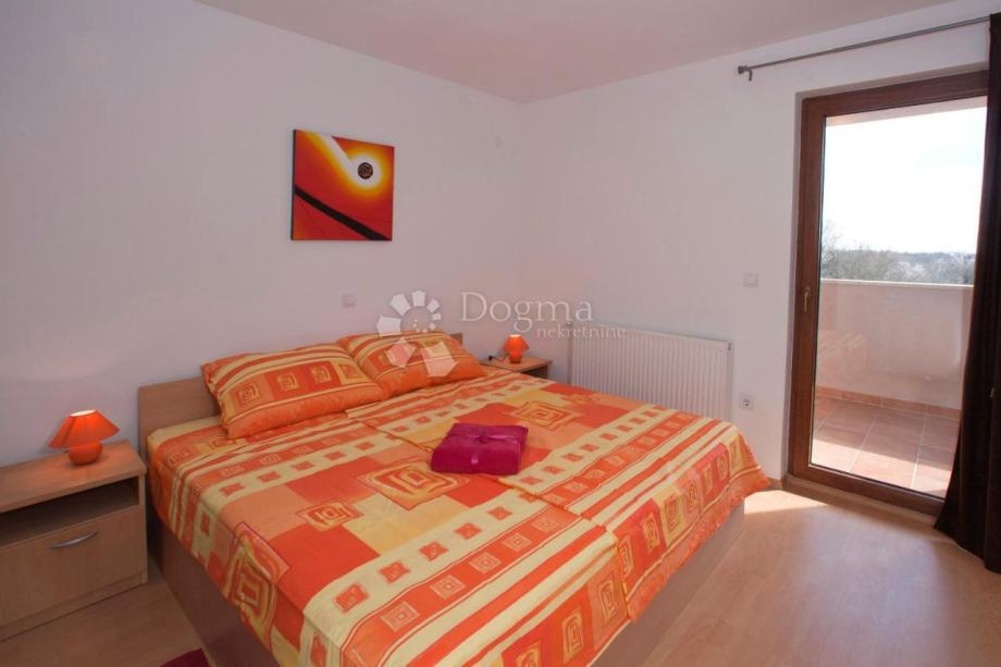 Na katu su 5 spavaćih soba sa svojim kupaonicama te terasa s koje se pruža pogled na bazen, more i zelenilo prepuno livadama i šumama.