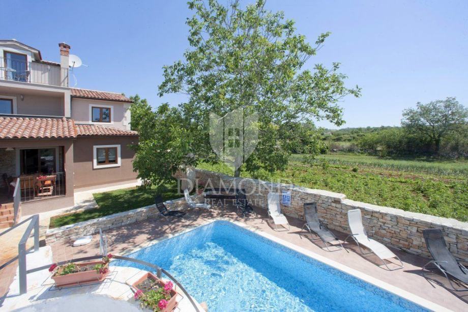 U bližoj okolici poznatog istarskog srednjovjekovnog gradića - Svetvinčenta, prodajemo ovu lijepu kuću za odmor sa bazenom.