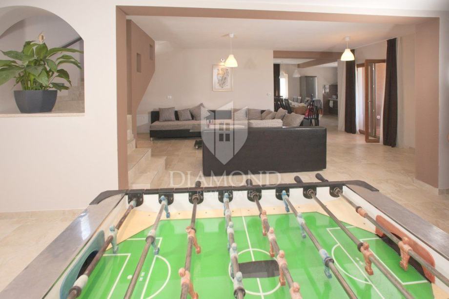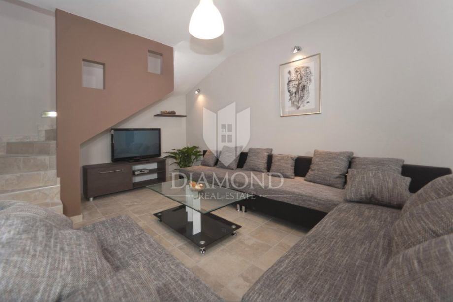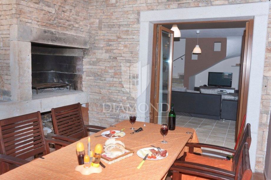 Kuća se sastoji od podruma, prizemlja, kata te mansarde, a ukupne je površine 245 m2. Počnimo od mansarde gdje se nalazi komforna spavaća soba sa pripadajućom kupaonicom i izlazom na balkon sa kojega se pruža prekrasan pogled na okolni krajolik. Na katu se nalaze još tri spavaće sobe, svaka sa svojom kupaonicom te dvije sa izlazom na balkon. U prizemlju kuće nalazi se još jedna spavaća soba, kupaonica te dnevni boravak sa kuhinjom i blagovaonicom. Tu je također i izlaz u garažu u koju stane jedan automobil, a gdje se ujedno nalazi i vešeraj. Podrum kuće ima 22 četvorna metra, a može se iskoristiti kao lijep skladišni prostor. Iz dnevnog boravka direktan je izlaz na terasu gdje se nalazi veliki blagovaonski stol i zidani roštilj, idealno mjesto za ljetna druženja i večere.