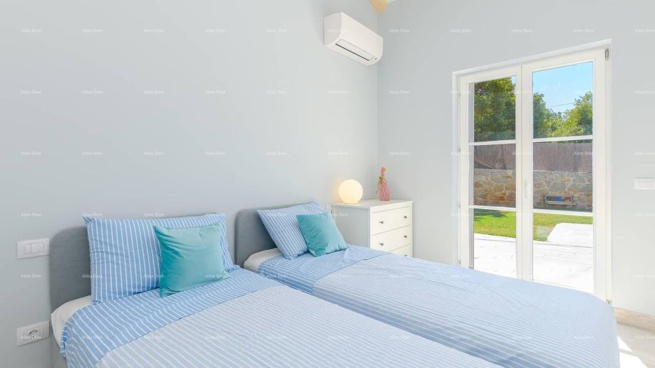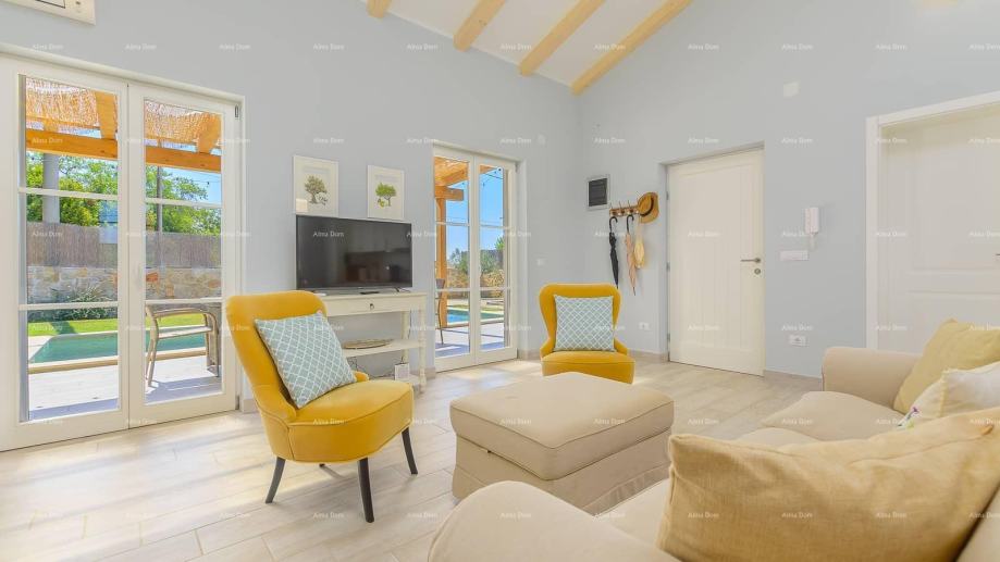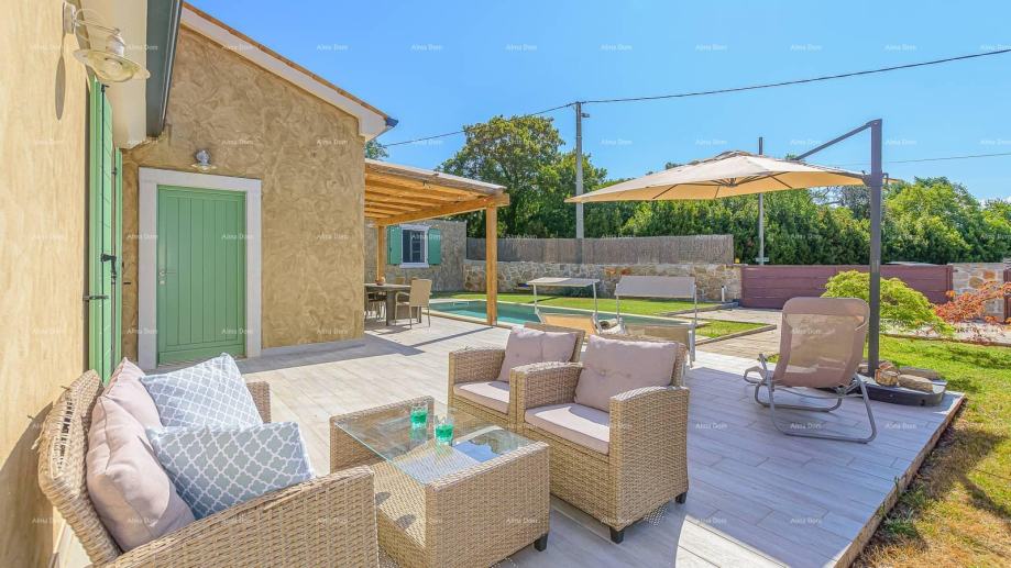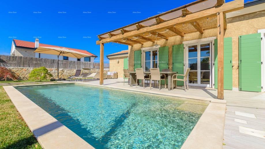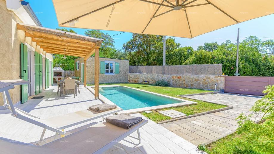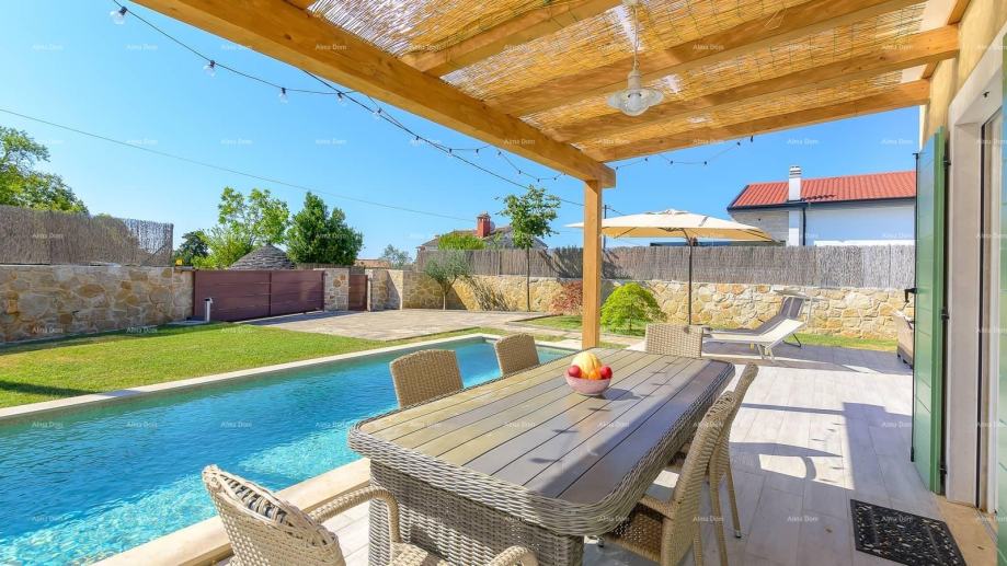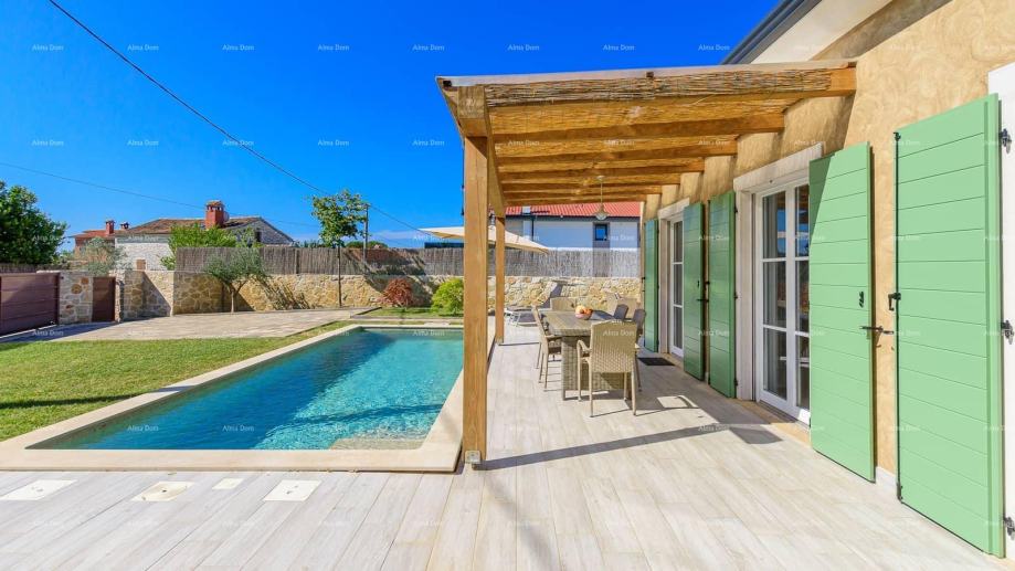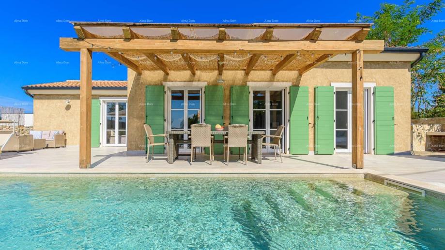 Vanjski prostor vile nudi grijani bazen, terasu, roštilj, ležaljke i vrtni namještaj, savršen za uživanje u ljetnim danima. Okućnica je potpuno ograđena, pružajući potpunu privatnost i mir dok uživate u ljepoti Istre i šarmu ove predivne vile.