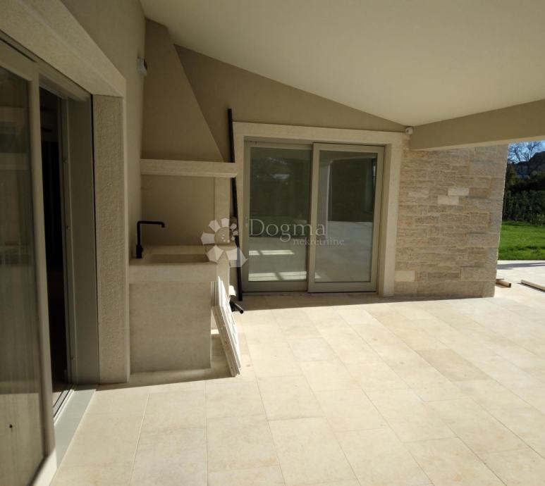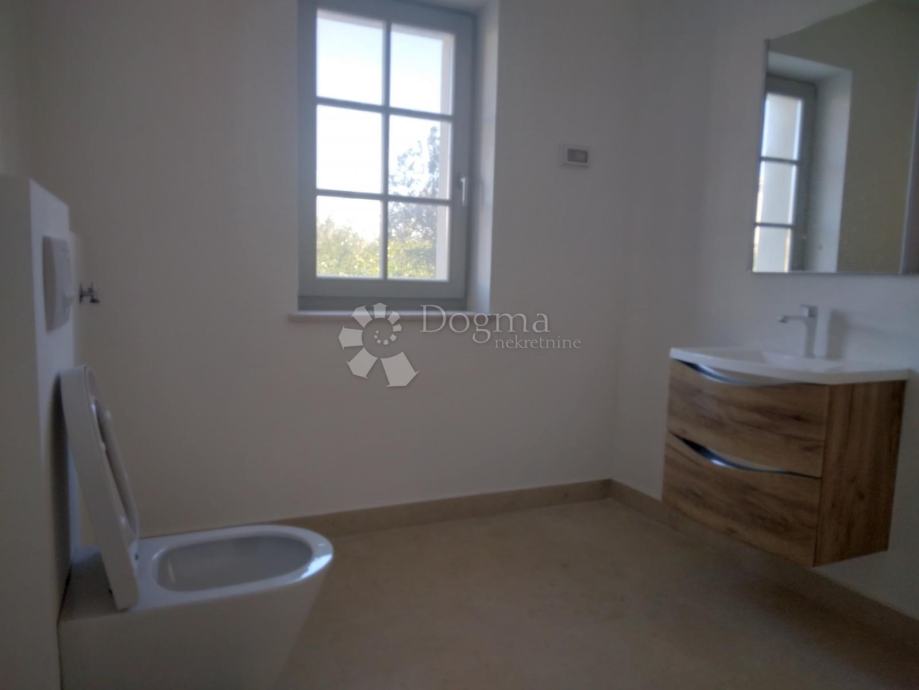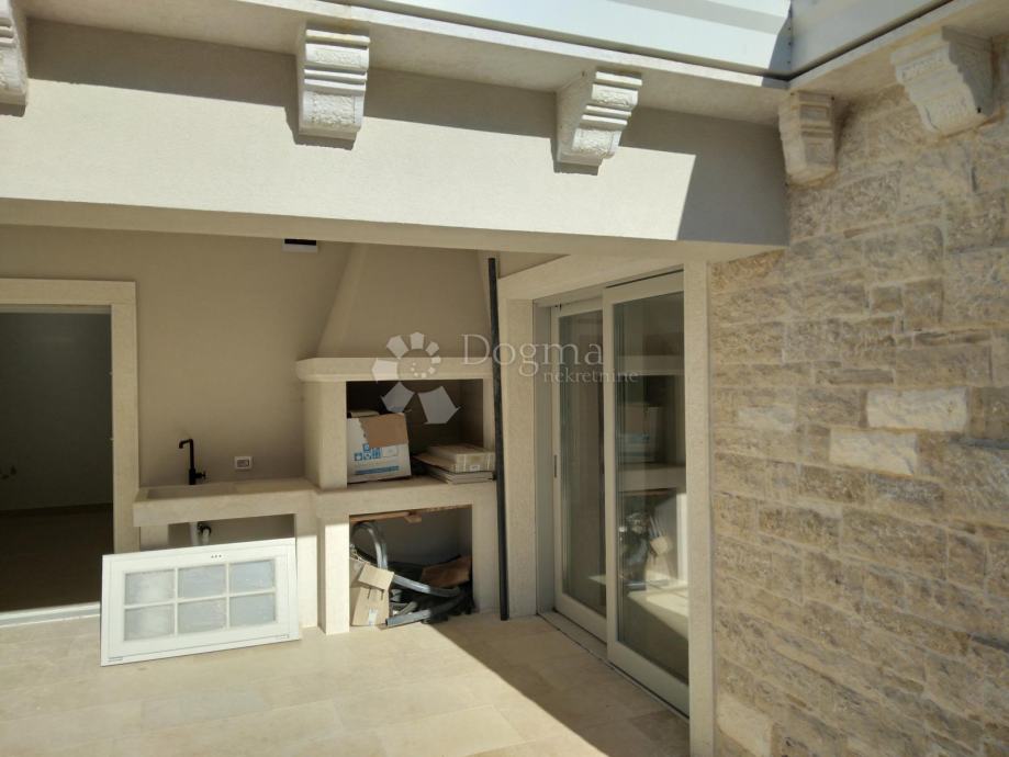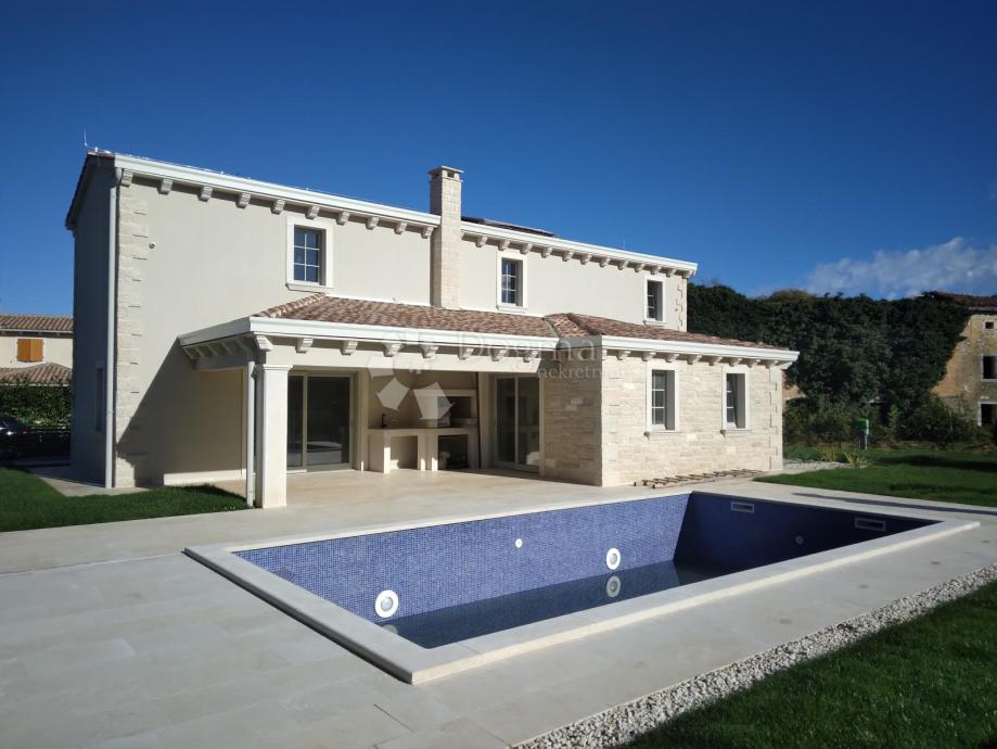 ISTRA rustikalna vila s bazenom u blizini Barbana smjestila se ova prekrasna kamena kuća. U prizemlju kuće nalazi se wc, kuhinja s blagovaonicom, dnevni boravak, soba s vlastitom kupaonom te strojarnica. Blagovaonica i dnevni boravak kroz klizne stijene imaju izlazak na prostranu terasu ,na kojoj se nalazi kamin i kameni sudoper. Pored terase se nalazi veliki bazen od 38m2 te sunčalište za potpuni ugođaj te vanjski tuš. Na kat dolazimo prekrasno dizajniranim stepenicama. na katu su smještene tri prekrasne sobe sa vlastitim, moderno dizajniranim, kupaonicama. Cijela kuća ima centralno podno grijanje sa dizalicom topline te klima uređajima u svim prostorijama. Kuća ima vrhunsku stolariju sa low-e staklima te prekrasnim kamenim ertama. U samoj gradnji kuće korišteni su vrhunski materijali. Okoliš je uređen s puno ljubavi pazeći pritom da bude autohton, kamenim zidovima, maslinama, začinsko bilje Istarskog podneblja. Sa desne strane kuće nalazi se parking za nekoliko automobila te portunom da daljinski. Kuća je opremljena alarmom te video nadzorom za maksimalni osjećaj sigurnosti. Ova nekretnina pruža sve za ugodan i siguran boravak u njoj.