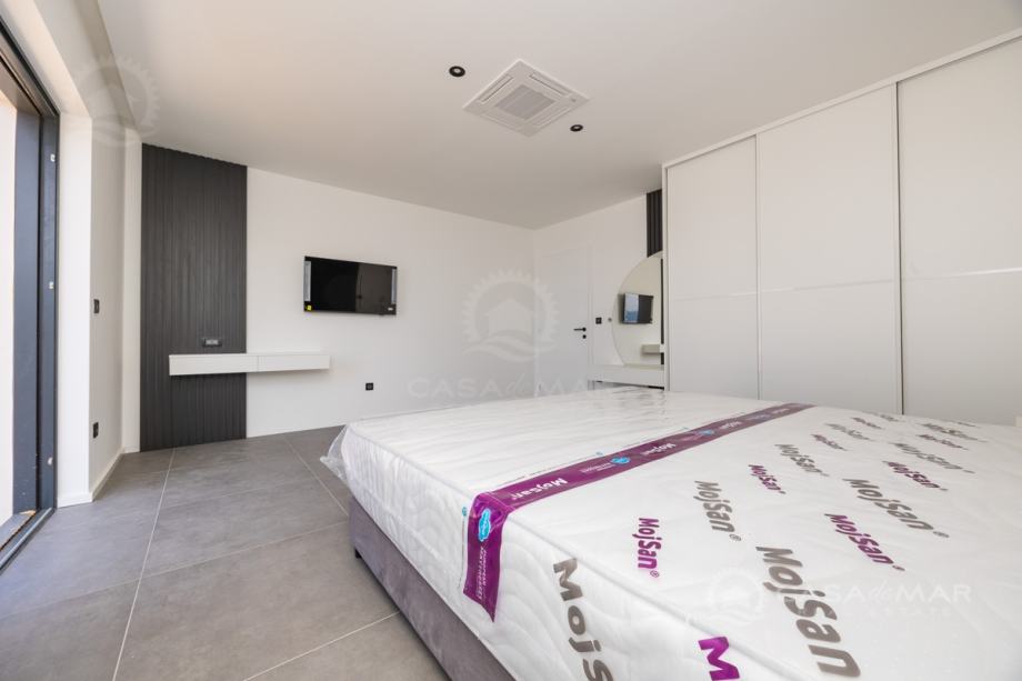 Vila je izgrađena od vrhunskih materijala i opremljena suvremenim tehničkim rješenjima: aluminijske klizne stijene, antracit PVC prozori, komarnici, protuprovalna vrata, podno grijanje, prvoklasna talijanska keramika, Mitsubishi plafonske klima jedinice (4-smjerne), sustav podnog grijanja i video nadzor. Prodaje se potpuno opremljena modernim namještajem visoke kvalitete, spremna za useljenje bez dodatnih ulaganja.
