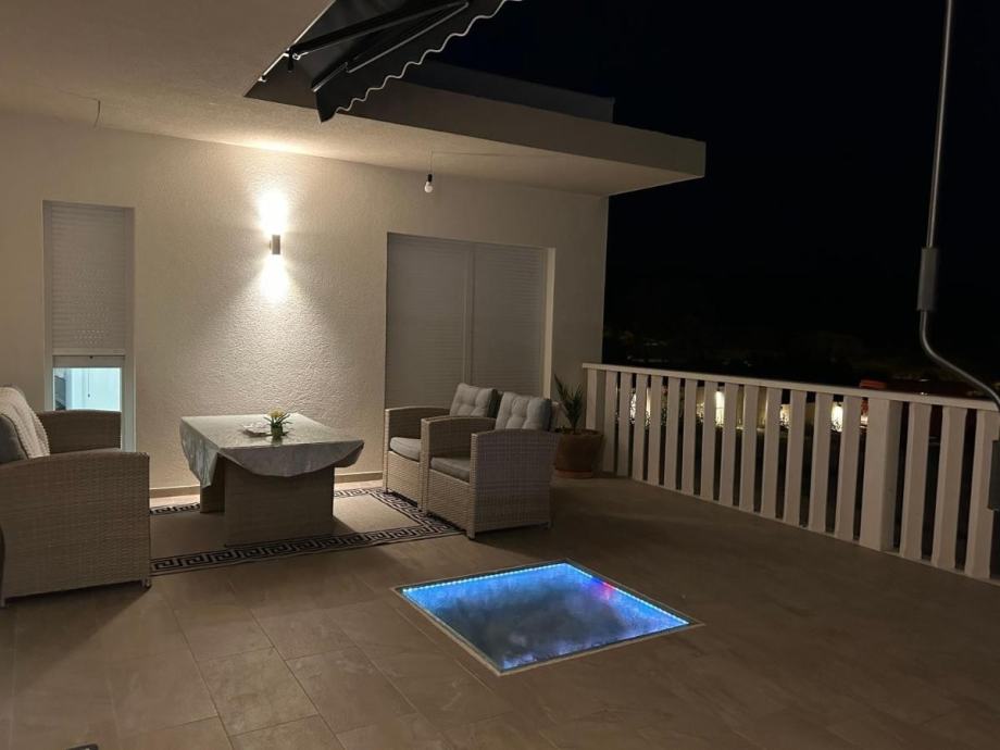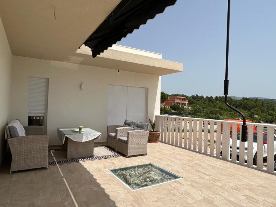 Ispred kuće nalazi se natkrivena terasa koja pruža prekrasan pogled i savršeno mjesto za opuštanje.
