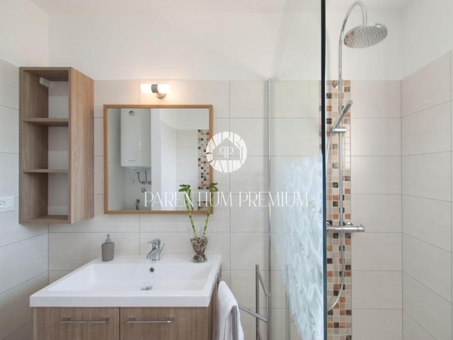 Iz dnevnog prostora izlazi se na natkrivenu terasu koja vodi u prekrasno uređenu okućnicu na kojoj se nalazi bazen od 32m2 sa kupalištem. Također tu nalazimo i prekrasnu ljetnu kuhinju kao stvorenu za opuštanje.