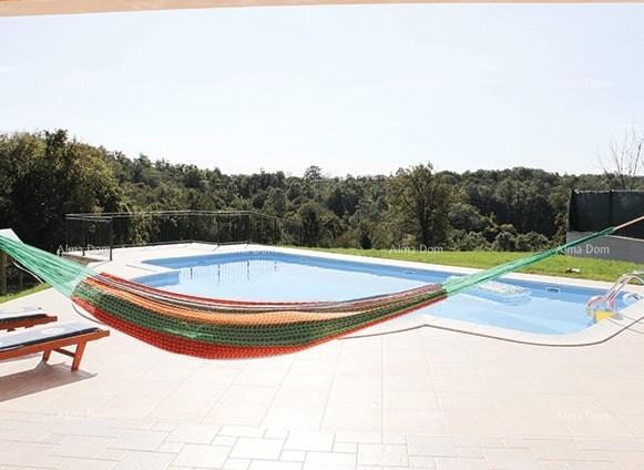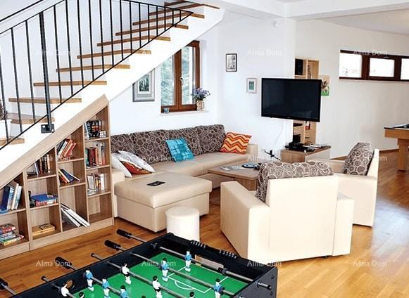 Kuća (400m2) nalazi se u prekrasnom šumskom okruženju, tako da u blizini možete pronaći brojne mogućnosti za šetnju ili planinarenje ili vožnju biciklom kroz najljepšu okolicu. Cijelo imanje (2350 m2) je ograđeno, tako da se vlasnici mogu osjećati sigurno i uživati u svojoj privatnosti, dok se djeca mogu slobodno igrati. Interijer kuće je moderan i opremljen kvalitetnim namještajem s ugodnim detaljima. Kamin i stol za biljar i nogomet u prostranom dnevnom boravku doprinose ugodnoj atmosferi.