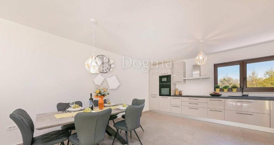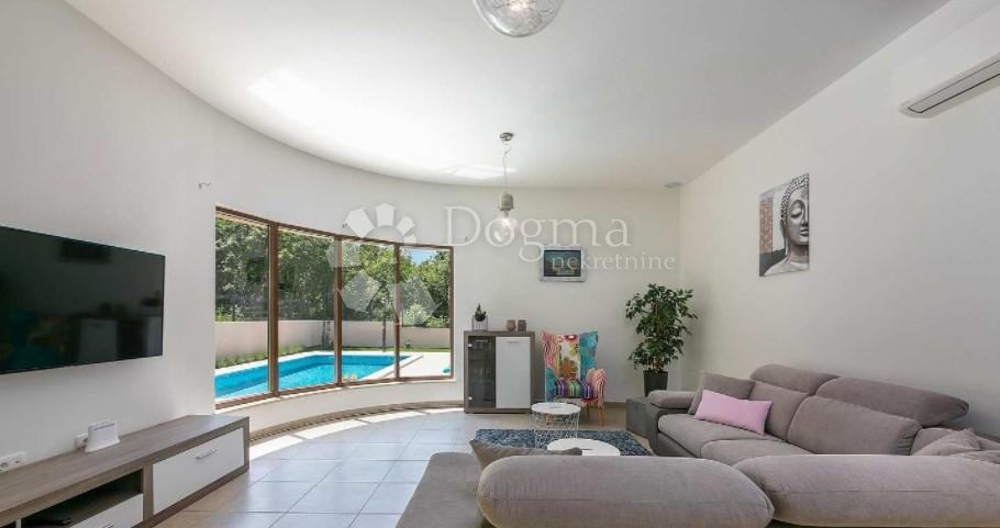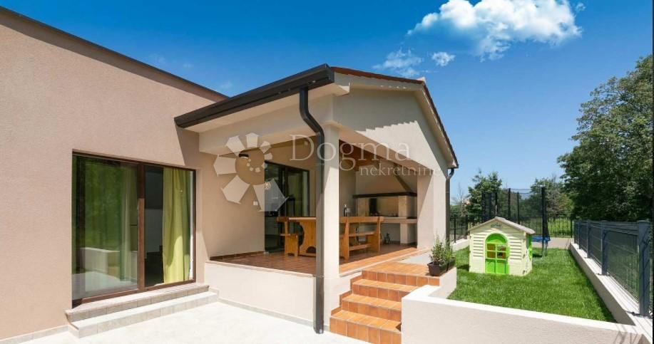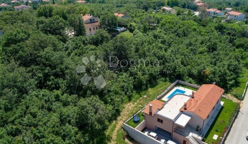 Sama vila prostire se na zelenoj okućnici od 700 m,a budućima kupcima nudi i otvoreni bazen od 32 m² sa ležaljkama, dječje igralište, natkrivenu terasu sa stolom i stolicama za objedovanje na otvorenom te zidani roštilj, dva parkirna mjesta u sklopu okućnice i dva parking mjesta u garaži.