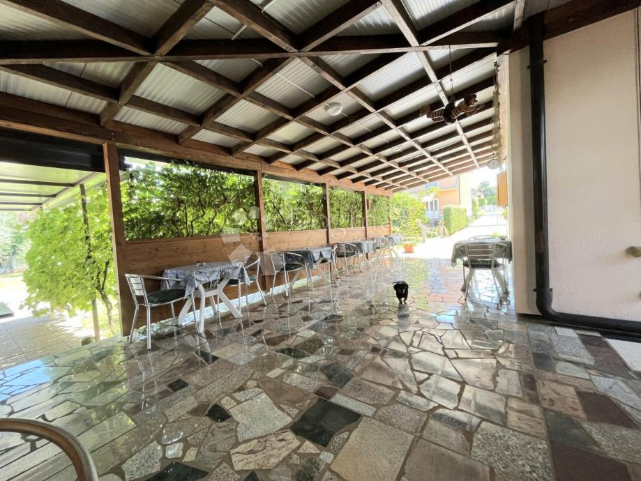 Iz soba, hodnikom izlazimo na dvije natkrivene terase ukupnih površina 47.86 m2 od kojih se jedna koristi kao prostor za doručkovanje na otvorenom uz pogled na prekrasno uređeni vrt te bazen .