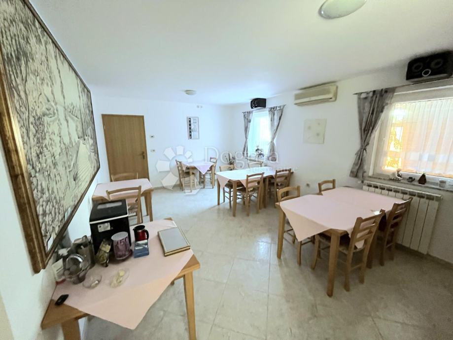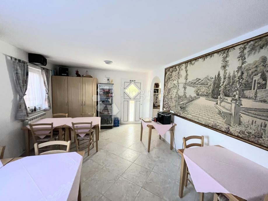 U prizemlju je smješteno 6 spavaćih soba, 2 kupaonice i kuhinja s velikom blagovaonom koje su u potpunosti opremljene za već uhodanu turističku namjenu.