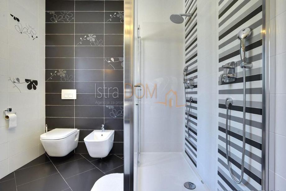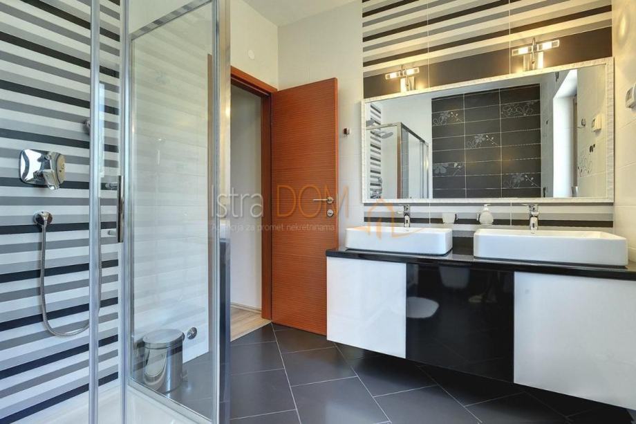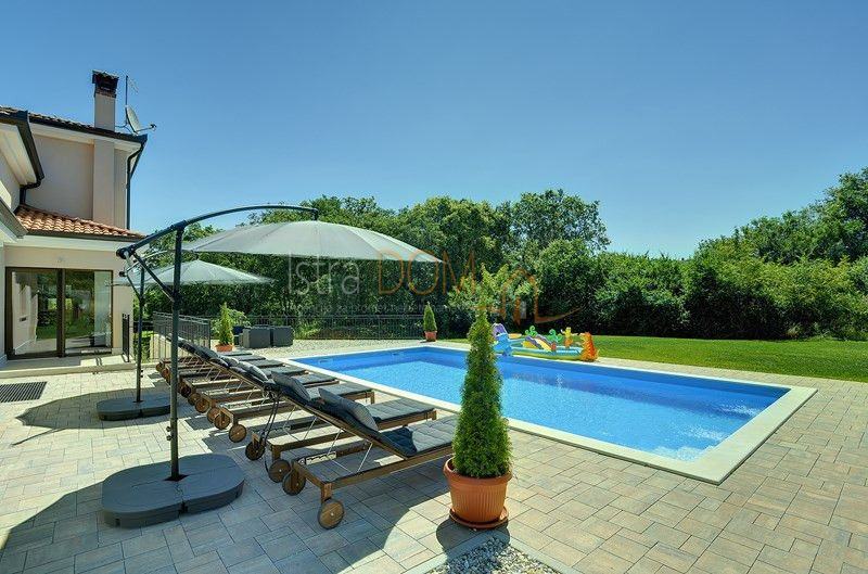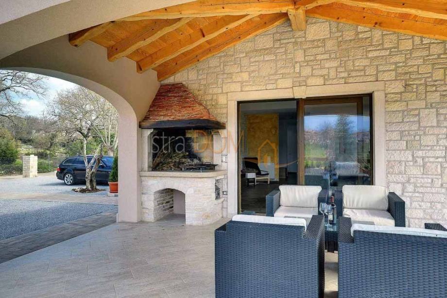 Prodajemo potpuno opremljenu modernu rustikalnu vilu koja se sastoji od 4 prostrane spavaće sobe, bazena, velikog vrta i prekrasnog pogleda na prirodu i okolinu. Vila se nalazi u blizini malenog gradića Rovinja, hrvatskog dragulja, i izgrađena je 2015. godine na 3 etaže, s naglaskom na kvaliteti i prostranosti. Imanje je okruženo velikom zelenom okućnicom od 2500 m2, savršeno se uklapajući u ljepotu krajolika. Pri ulasku u kuću, predsoblje vodi u veliki otvoreni dnevni boravak, blagovaonicu i kuhinju, koji se sjajno povezuju s vanjskim prostorom kroz natkrivenu terasu, omogućujući uživanje u bazenu i vrtu s opuštajućim pogledom na prirodu. Na istoj etaži nalazi se i spavaća soba s vlastitom kupaonicom, wc i ostava. Stepenice vode na prvi kat gdje se nalaze još tri spavaće sobe, svaka s vlastitom kupaonicom. U podrumu se nalazi konoba s ognjištem, praonica rublja, velika prostorija za druženje koju možete prilagoditi po vlastitim idejama, te još jedna velika kupaonica. Konoba u podrumu ima vlastiti ulaz/izlaz. Prednost je i garaža unutar kuće za dva vozila. Ljetna popodneva možete provesti sunčajući se pored bazena, u hladovini pergole te uživati na vanjskoj natkrivenoj terasi. Ova vila je idealna kao kuća za odmor ili stalni boravak, nudi blizinu svih sadržaja uz privatnost. Glavne značajke nekretnine uključuju: - Blizinu Rovinja - Kompletno namještena vila - Grijanje/hlađenje: centralno grijanje na drva, inverter klima uređaji, priprema za ugradnju kamina u dnevnom boravku - Garaža - Podovi od keramičkih pločica i laminata - PVC stolarija - Automatsko navodnjavanje - Bazen veličine 54 m2. Za sve dodatne informacije...