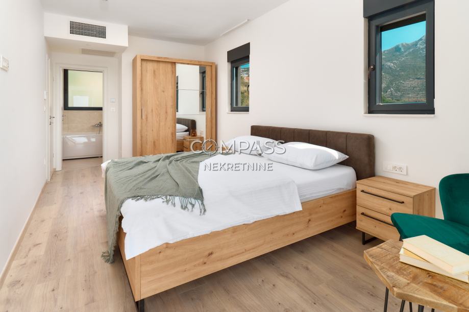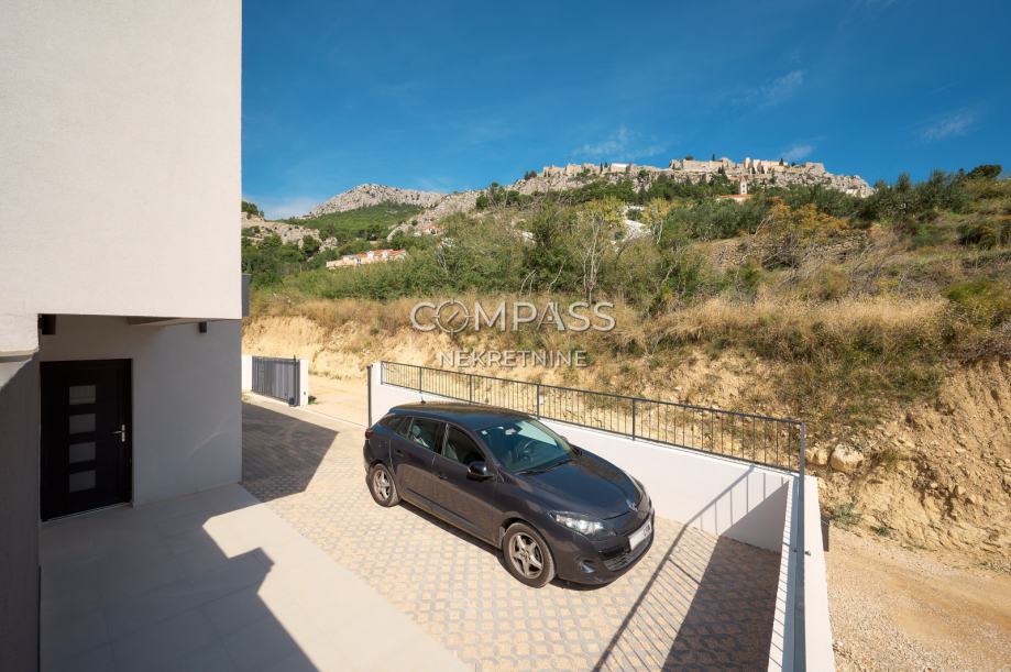 Die Eigentümer haben die Villa mit besonderer Liebe zum Detail entworfen und ausgestattet, wodurch eine High-End-Immobilie mit erstklassigem Design und Qualität entstanden ist. Von den Balkonen und der Terrasse bietet sich ein spektakulärer, ungehinderter Blick auf das Meer und die Inseln, während auf der Nordseite der imposante Anblick der historischen Festung Klis beeindruckt.