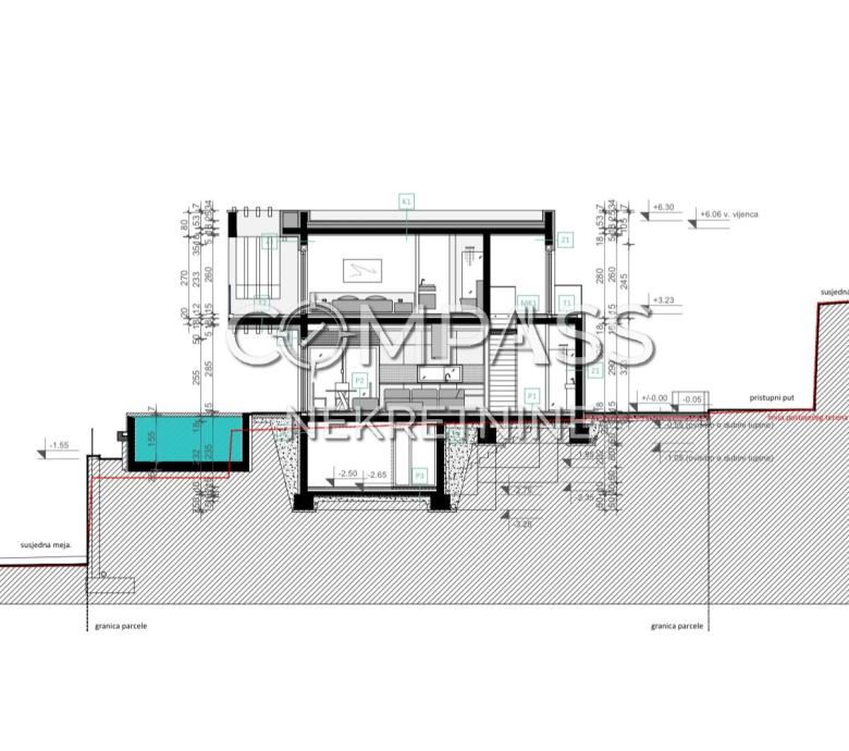 Vi förmedlar försäljningen av en unik, lyxig villa i Klis, som utstrålar elegans och sofistikering. Villan sträcker sig över två våningar, sammanlänkade med en vacker trappa, och inkluderar fyra rymliga sovrum, alla med eget badrum, ett fullt utrustat kök, en matplats, ett luftigt vardagsrum och en rymlig terrass som leder till en utomhuspool och en elegant loungeyta. Dessutom finns två utomhusparkeringsplatser.
