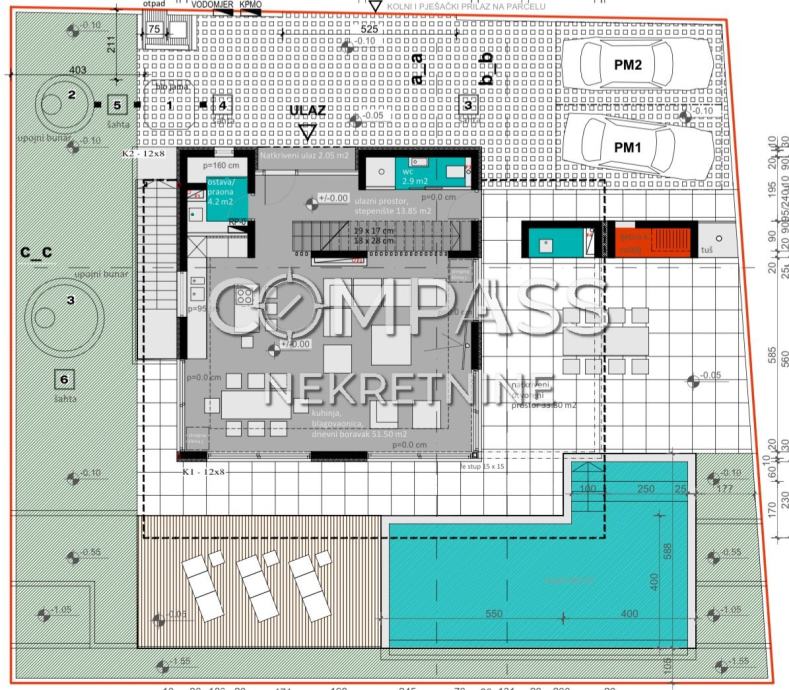 Wir vermitteln den Verkauf einer einzigartigen, luxuriösen Villa in Klis, die Eleganz und Raffinesse ausstrahlt. Die Villa erstreckt sich über zwei Etagen, verbunden durch eine wunderschöne Treppe, und umfasst vier geräumige Schlafzimmer, jedes mit eigenem Bad, eine voll ausgestattete Küche, einen Essbereich, ein luftiges Wohnzimmer und eine großzügige Terrasse, die zu einem Außenpool und einem eleganten Loungebereich führt. Zusätzlich stehen zwei Außenparkplätze zur Verfügung.