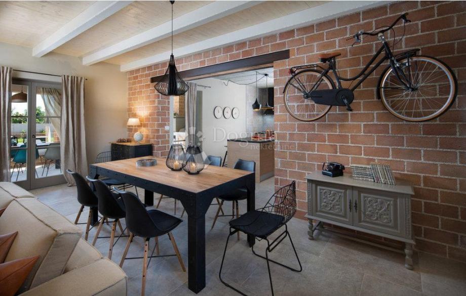 Na prodaju je prekrasna vila smještena u mirnom mjestu Divšići, u blizini Pule, idealna za opuštajući odmor u srcu Istre. Ova elegantna nekretnina pažljivo je dizajnirana u tradicionalnom istarskom stilu, gdje se skladno isprepliću kamen i drvo, naglašavajući njezinu arhitektonsku vrijednost i autentičan šarm.