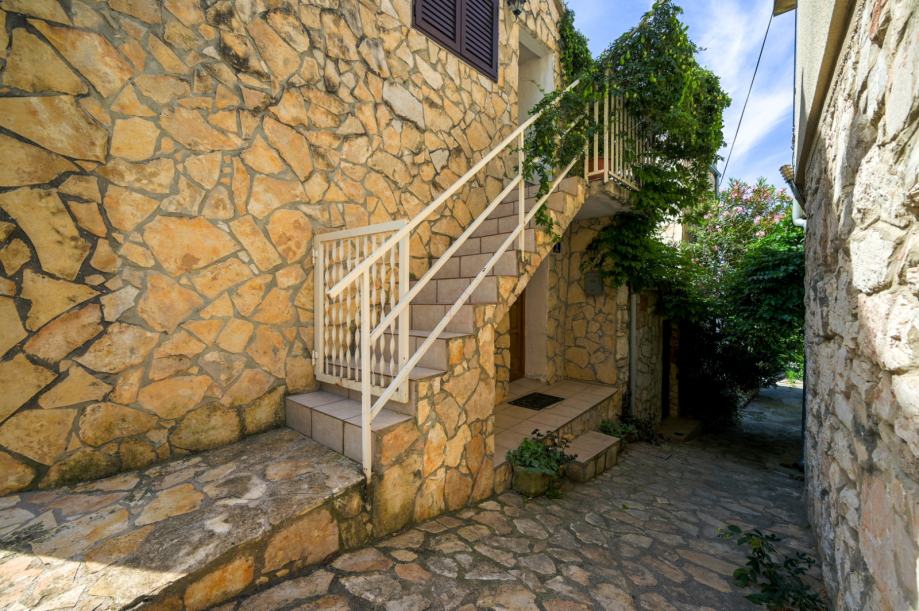 Posebnu vrijednost ovom objektu daje kamena fasada, koja prostoru pruža autentičan mediteranski šarm i dugovječnost. Iz kuće i s terase pruža se lijep pogled, a posebno se ističe pogled na more, što dodatno naglašava privlačnost ove nekretnine.