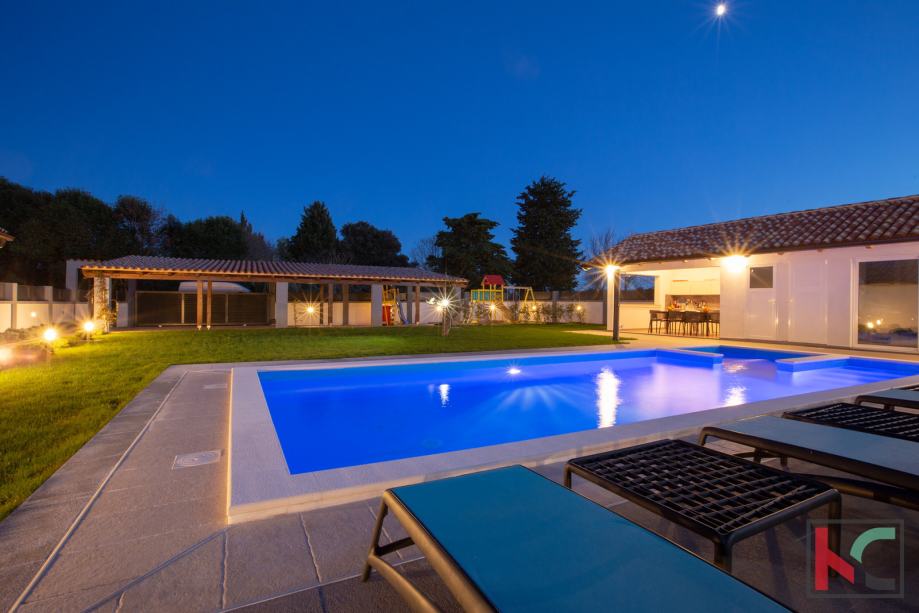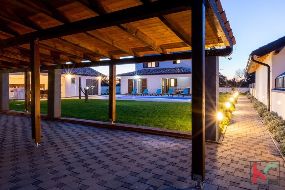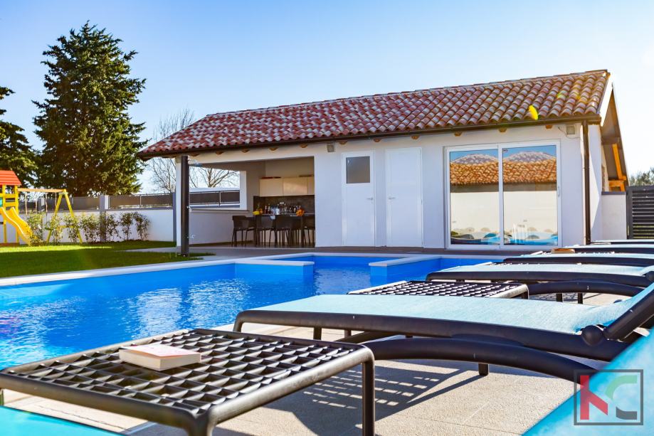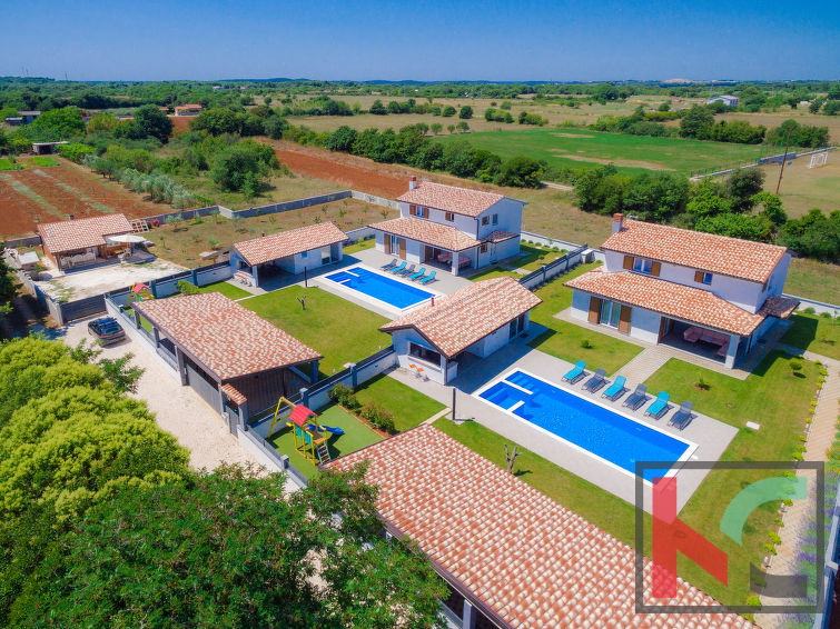 Kuće su veličine 111 m2 na uređenojj okućnici od 401m2 i potpuno su identične te se sastoje od prizemlja i prvog kata. Imaju tri spavace sobe sa vlastitim kupaonicama te dnevni boravak sa blagovaonicom i kuhinjom i izlazom na veliku natkrivenu terasu pored bazena i prodaju se potpuno stilski i moderno namještene.