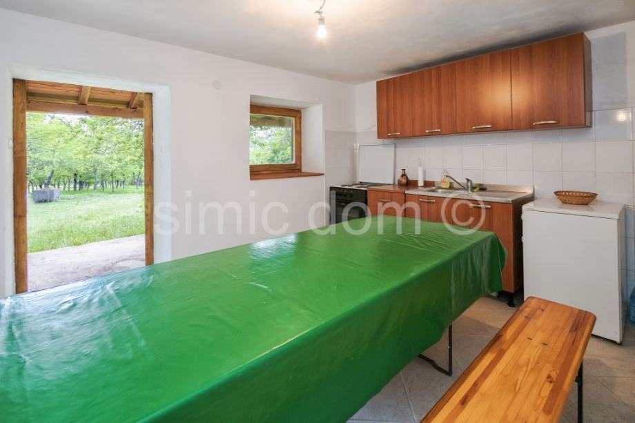 Posredujemo u prodaji prekrasne, izvrsno održavane i vrlo šarmantne glavne kuće, a tu je i dodatan objekt. Sve je skupa smješteno na parceli od 8500m2. Stambena površina glavne kuće je 100m2, dok je korisna površina pomoćnog objekta sa garažom (gospodarske zgrade) 90m2. Glavna se kuća prostire etažama prizemlja i kata. U prizemlju se nalazi kuhinja s blagovaonicom te kupaonica i dnevni boravak/soba, a prostor se može urediti kao zaseban apartman. Na prvom su katu dvije spavaće sobe, kupaonica te još jedan dnevni boravak s kuhinjom i blagovaonicom. Kuća je u vrlo dobrom stanju te je kompletno renovirana 2011. Kuća ima sve priključke (uz septičku jamu), a do nje vodi asfaltiran javni put. Imanje je prepuno stabala voćaka te je ukupan dojam da je riječ o vrlo dobroj prilici što za obiteljske namjene, ali su tu i mogućnosti oplemenjivanja u turističke svrhe. Sama lokacija je vrlo mirna, dok se svi sadržaji nalaze u obližnjem Donjem Lapcu koji je udaljen 5 minuta vožnje. Vlasništvo uredno.