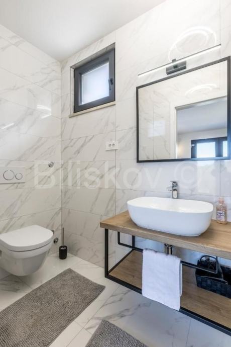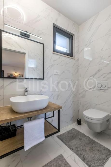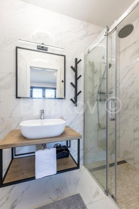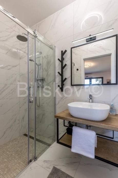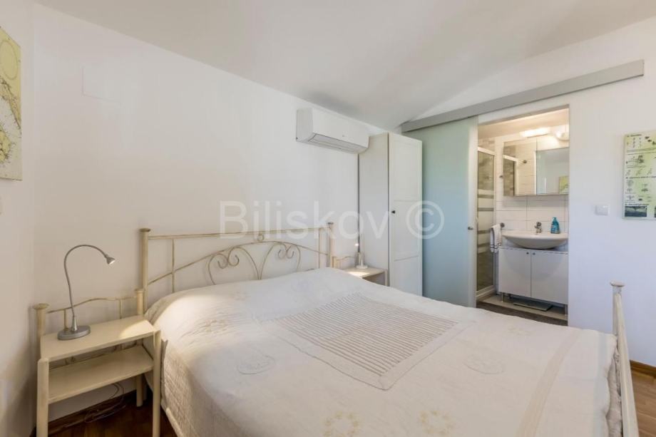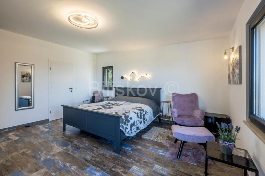 Sastoji se od dvije velike sobe sa kupaonicama i zasebnim terasama, dnevnog boravka u sklopu kuhinje i blagovaone i treće sobe sa kupaonicom (otvoreni koncept), velikom terasom s kaminom i vanjskim blagovaonskim stolom.