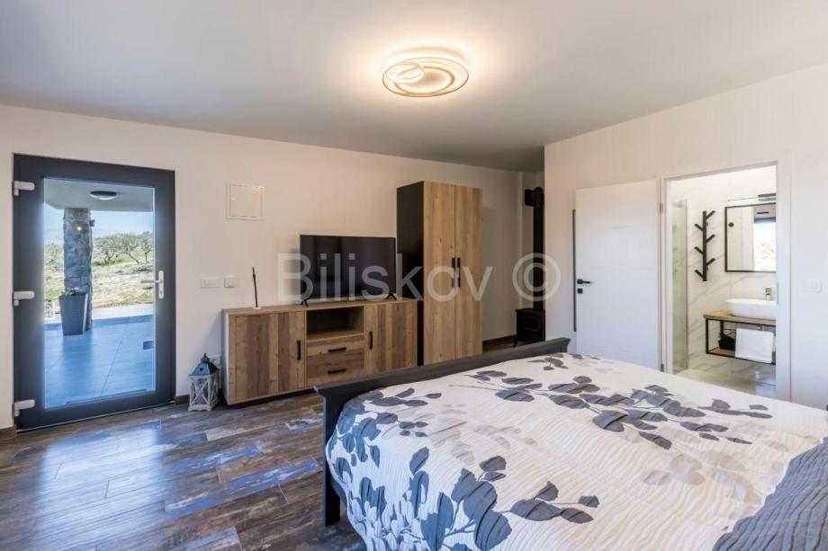 Kuća ima izvrsno riješeno napajanje el. energijom iz solarnih panela koja se skladišti u velikim baterijama 36 kWh. Na imanju se također nalazi iznimno velik centralni spremnik za toplu vodu.