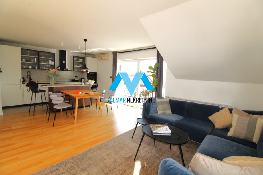 Beautiful, newly renovated 3-bedroom apartment, in a quiet, green location in the Donje Prekrižje street. The apartment is abundant in daylight, and due to its south-west orientation it is illuminated by the sun all day long. The floor plan of the apartment is 106m2, while the total net usable area is 89m2. The apartment is located on the 2nd floor (attic) of a small residential building. The bus stop is about 100 meters away.