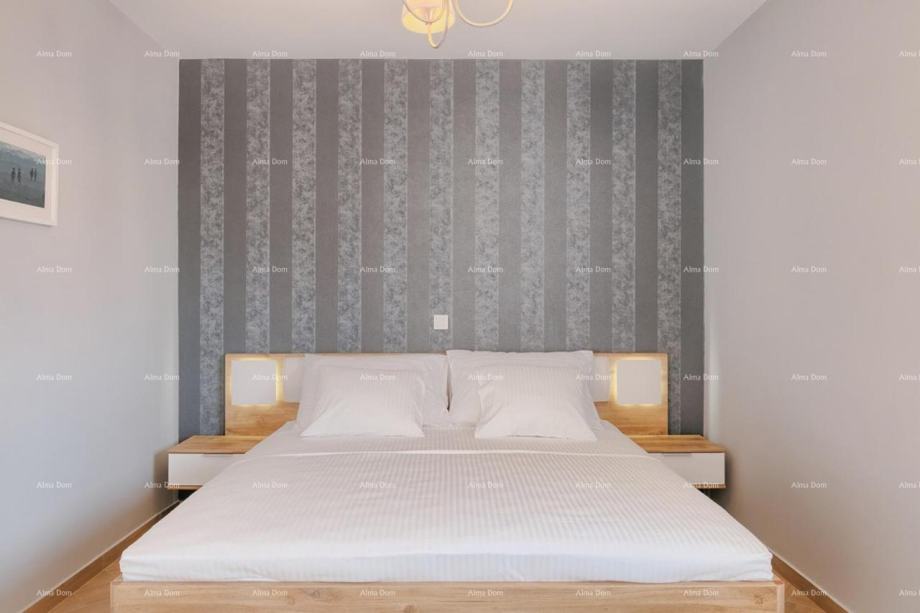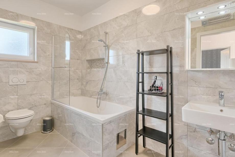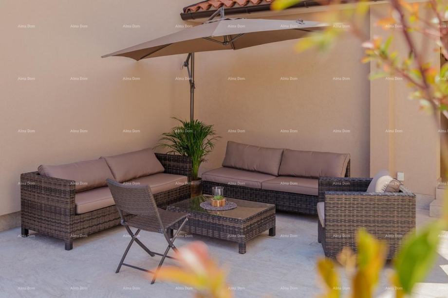 Nalazi se na mirnoj lokaciji, ima stambenu površinu od 180m2, dvoetažna, prizemlje i kat. U prizemlju kuće nalazi se dnevni boravak sa kuhinjom i trpezarijom, spavaća soba, vešeraj i kupatilo. Stepenište vodi na kat gdje se nalaze tri spavaće sobe od kojih jedna ima vlastitu kupaonicu, kao i zajedničko kupatilo i terasa. Vila ima parking za dva automobila, zelenu površinu i bazen 6x3 sa sunčalištem. Uz bazen se nalazi lijepo uređena tavernom sa kaminom. Do prve plaze 800 m. Uspješno se iznajmljuje u turističke svrhe.