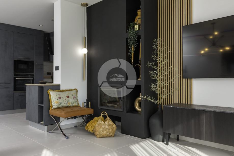 Stambena površina kuće iznosi 218 m2. Sastoji se od 3 spavaće sobe s vlastitim kupaonicama i gostinjskog wc-a, velike kuhinje s blagovaonicom i dnevnim boravkom iz kojeg se izlazi na bazen.