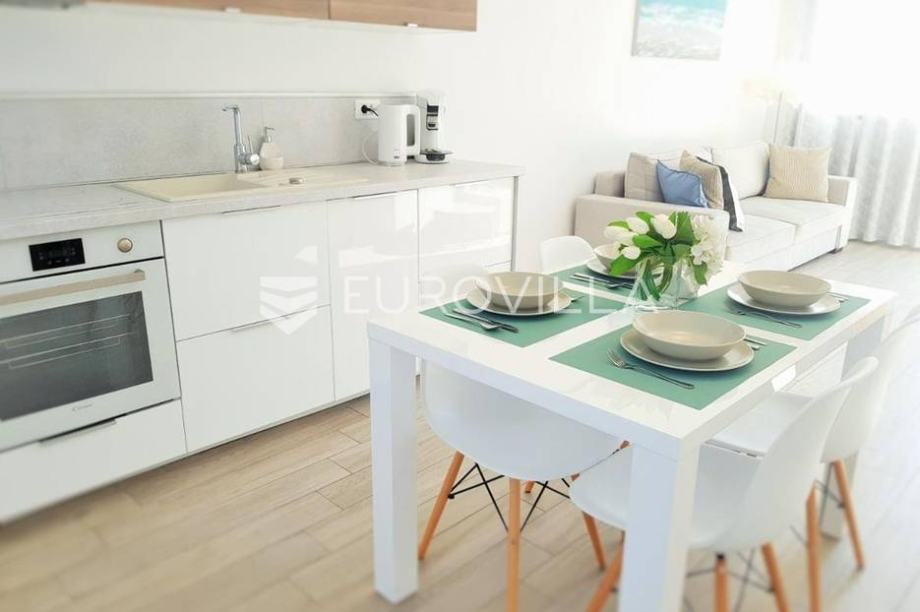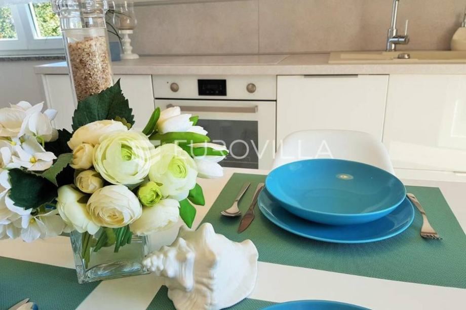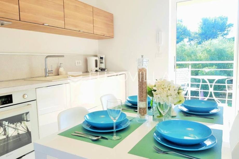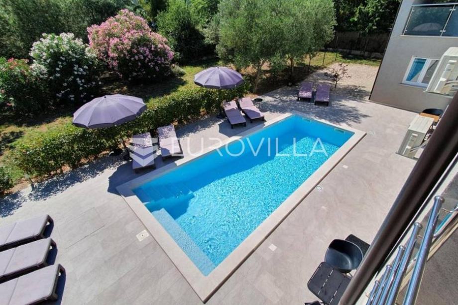 Svega 600 m od plaža i kristalno čistog mora prodaje se kuća s bazenom. Vila se proteže kroz prizemlje i prvi kat, izgrađena 2017. godine, a sastoji se od četiri apartmana te svaki apartman ima svoj zasebni ulaz. U prizemlju se nalaze dva komforna apartmana, svaki 70-75 m2, a sastoje se od...