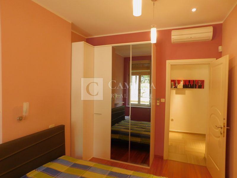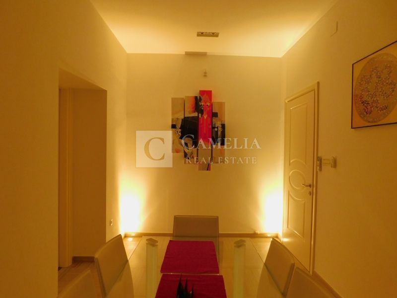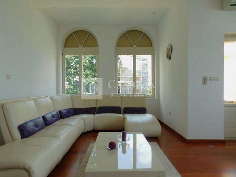 Stan je kompletno adaptiran u modernom stilu, spušteni stropovi, knauf, betonska ploča elastična sa vlaknima i perlitom, vanjska stolarija drvena-ariš, proizvođača HAIN, rolete aluminijske sa daljinskim elektricnim spuštanjem-podizanjem, nove vodne i elektro instalacije, sa halogen rasvjetom i alarmnim sustavom. Kupaona sa jacuzzi kadom i sauna, marke Teuco.