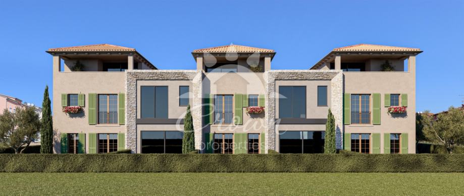 Arhitektura zgrade prati suvremene mediteranske trendove – čiste linije, prozračan raspored i pažljivo odabrani materijali stvaraju dojam diskretne elegancije. U objektu se nalaze još četiri stana sličnog luksuznog karaktera, čime je zadržan miran i intiman koncept stanovanja.