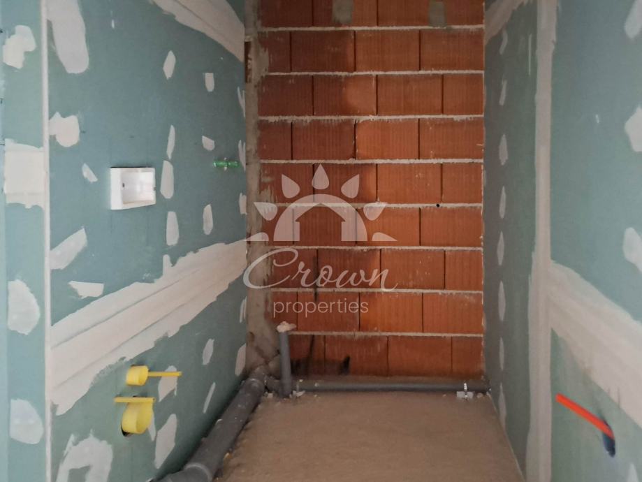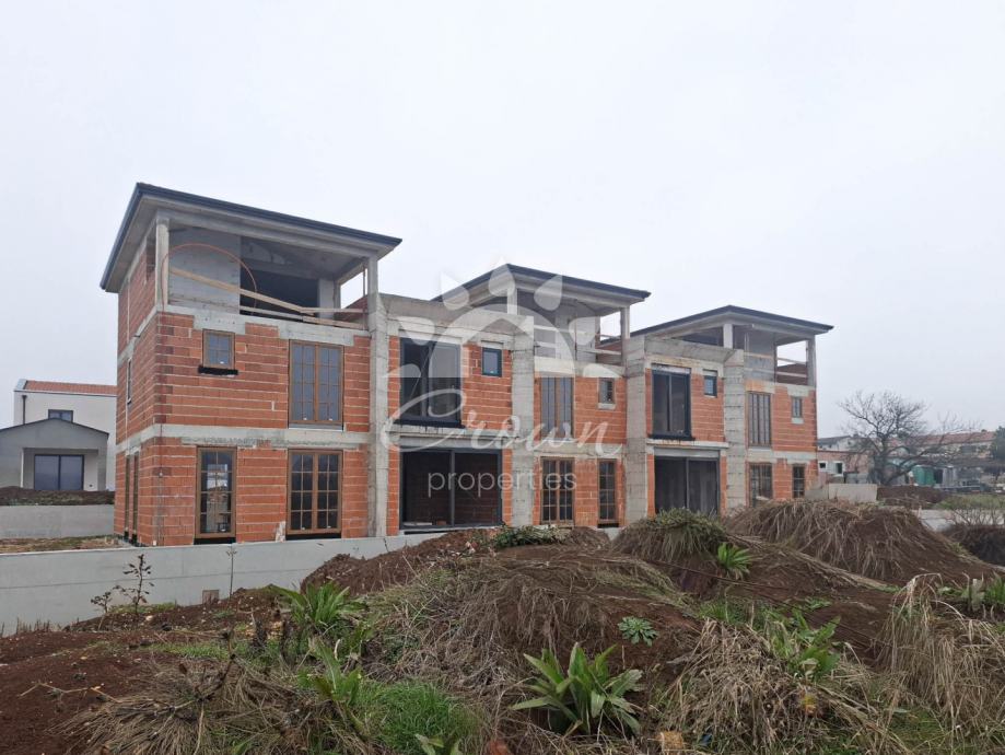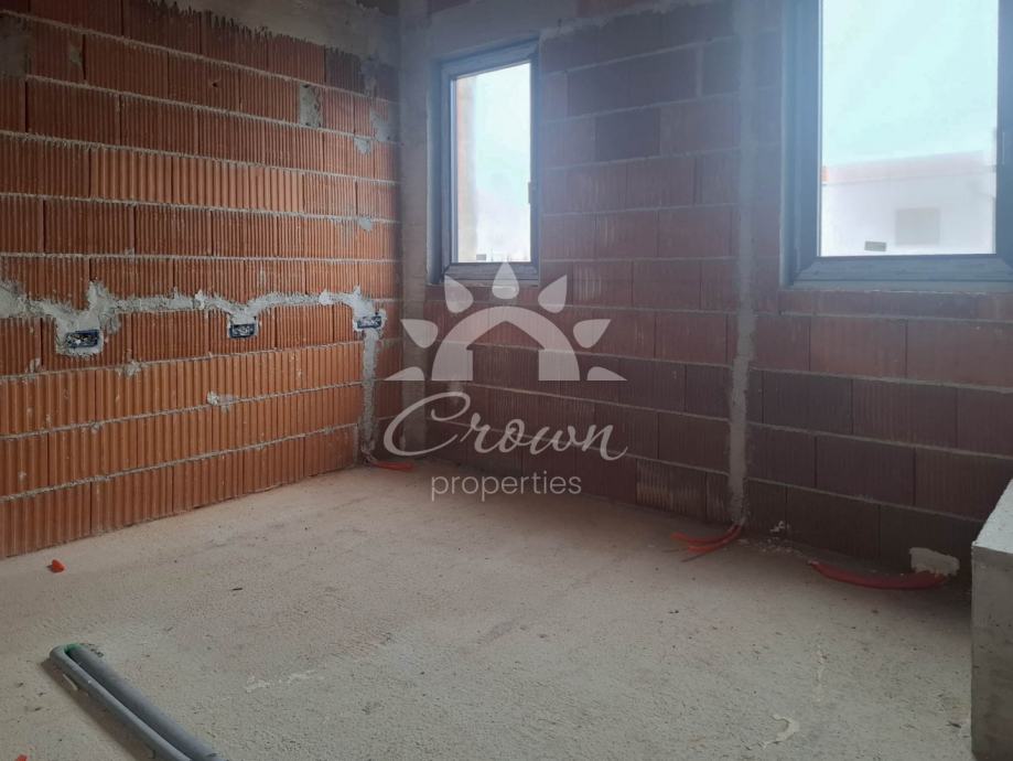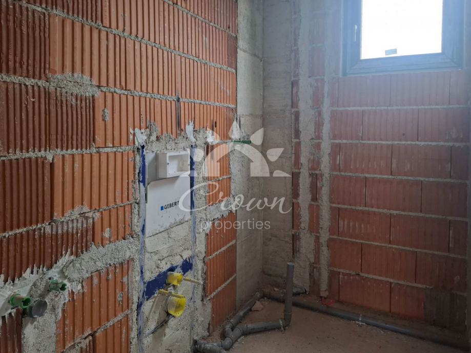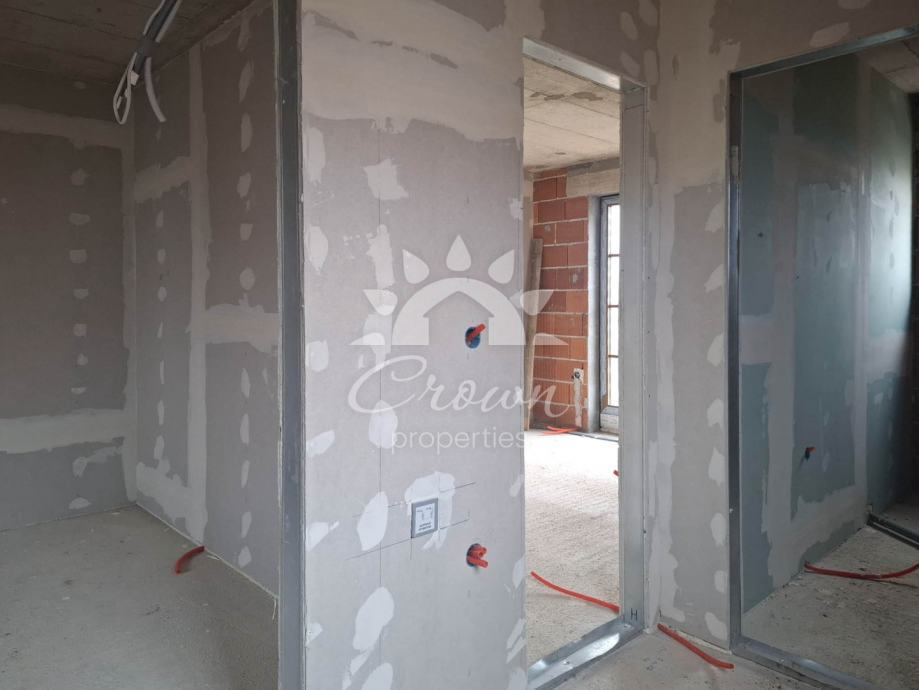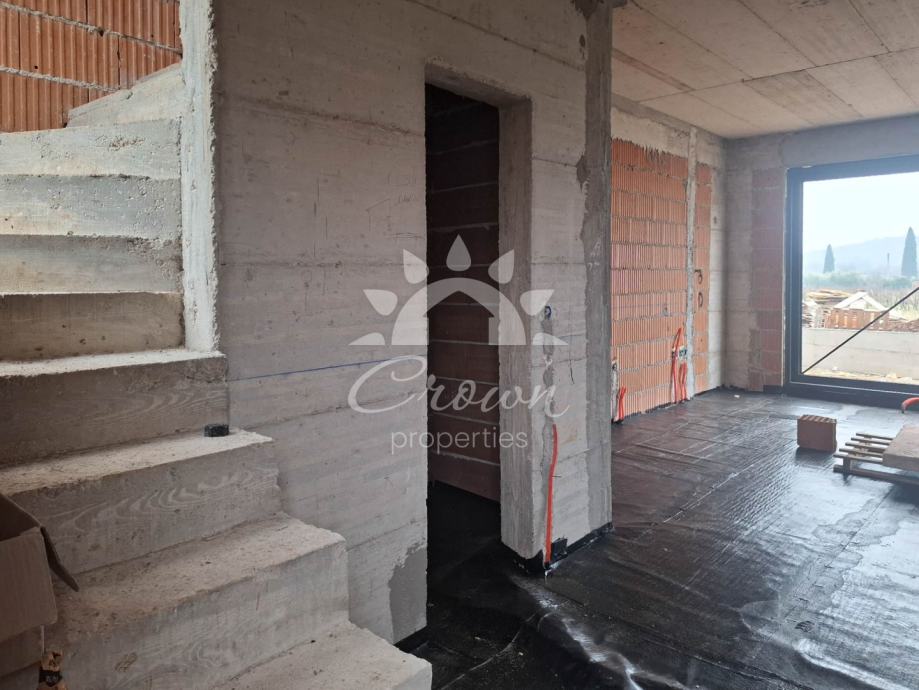 Stan ukupne površine 126 m² prostire se kroz prizemlje i dvije etaže. Prizemlje je zamišljeno kao središnji prostor doma te obuhvaća prostrani dnevni boravak, blagovaonicu i moderno koncipiranu kuhinju otvorenog tipa. Iz tog prostora izlazi se na natkrivenu terasu od 12 m², idealnu za uživanje u jutarnjoj kavi ili večernjem odmoru tijekom cijele godine.