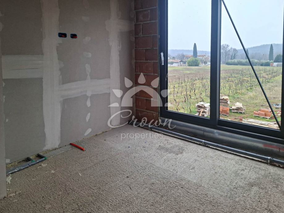 Svaka etaža ima vlastitu elegantno uređenu kupaonicu, što osigurava visok standard stanovanja i maksimalnu udobnost za sve članove obitelji ili goste. Velika staklena stijena dominira dnevnim prostorom, ispunjava interijer obiljem prirodnog svjetla i stvara profinjenu poveznicu s vanjskim ambijentom.