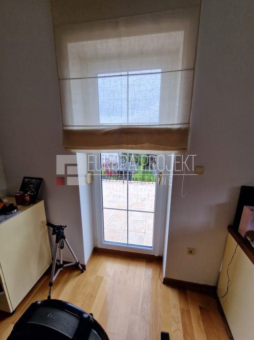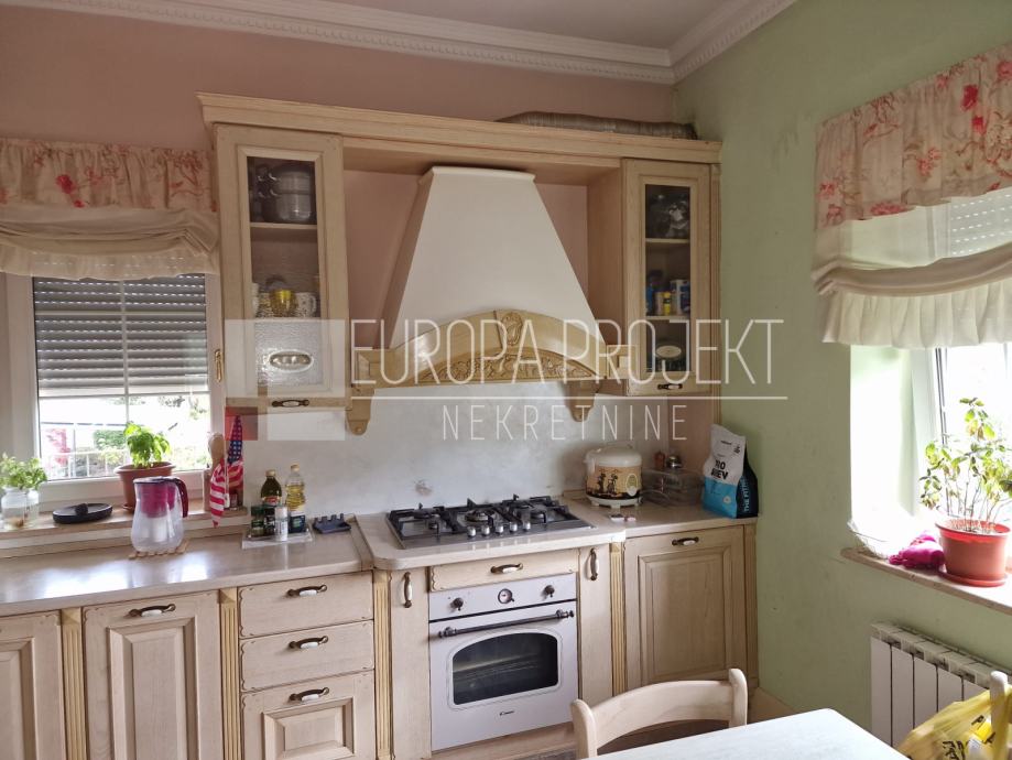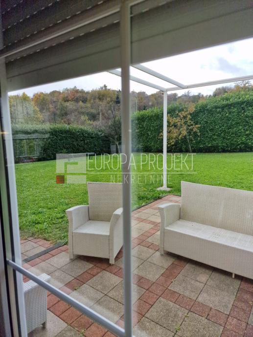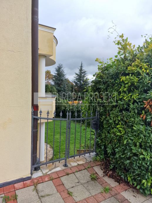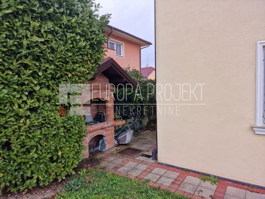 Ova ekskluzivna kuća opremljena je protuprovalnim vratima, portafonom, alarmnim sustavom s izravnom vezom prema zaštitarskoj agenciji, podnim grijanjem u hodniku, kuhinji i kupaonicama, klima uređajima, brzim internetom, satelitskom TV, kaminom, vrhunskim namještajem te parketima. Nalazi se u mirnoj slijepoj ulici, a u neposrednoj blizini su vrtić, osnovna škola, dućan, ljekarna i autobusna linija. Dvorište omogućava parking za četiri vozila.