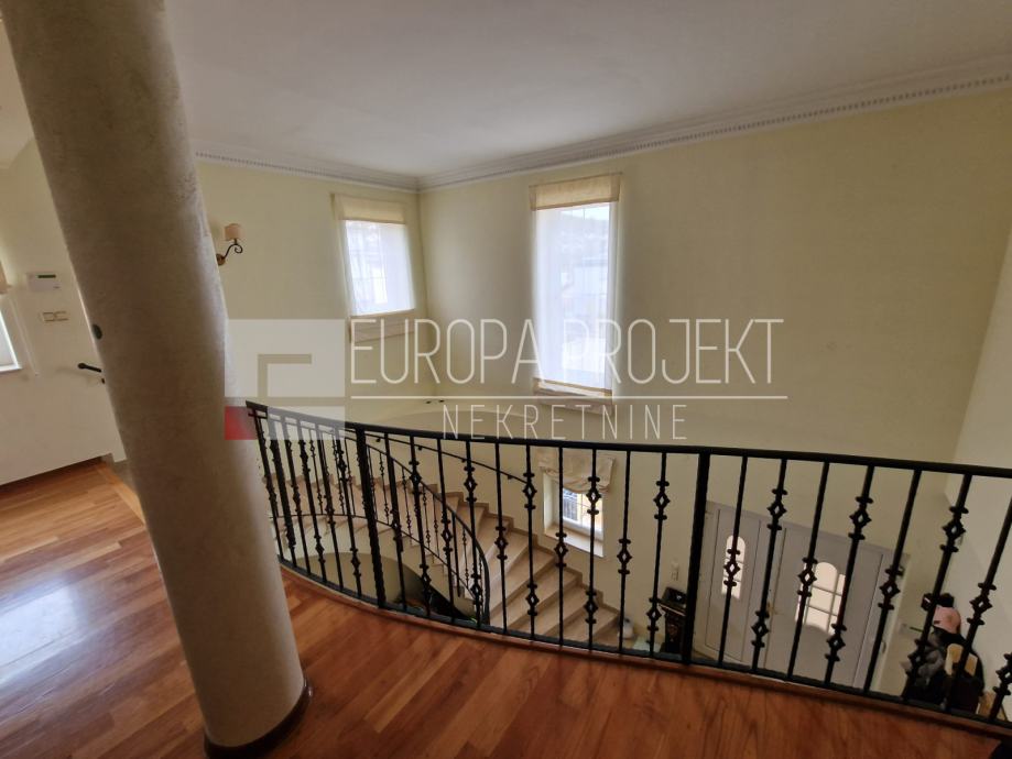 Na atraktivnoj lokaciji u Šestinama nalazi se elegantna samostojeća kuća s ukupnom površinom od 550 m2 raspoređenih na četiri etaže. Okućnica ove impozantne nekretnine prostire se na 1200 m2 te uključuje uredjeni vrt opremljen roštiljem.