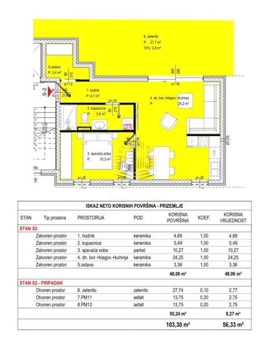 U ponudi je moderan stan S2 u prizemlju, ukupne neto korisne površine 48,06 m².
