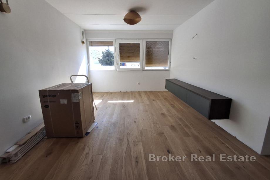 Stan je upravo temeljito renoviran – postavljena je nova stolarija, instalacije, podovi te sanitarije, a u tijeku su završni radovi koji uključuju visokokvalitetne završne obrade, što ga čini odmah useljivim i bez dodatnih ulaganja.