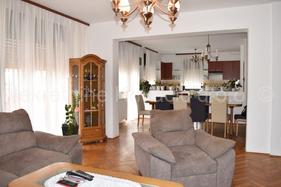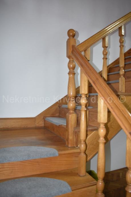 Kuća se ukupno sastoji od 6 spavaćih soba, dva dnevna boravka s izlazom na lijepi balon s lođom, dvije kupaonice i dva wc-a, te dva ulazna hala.